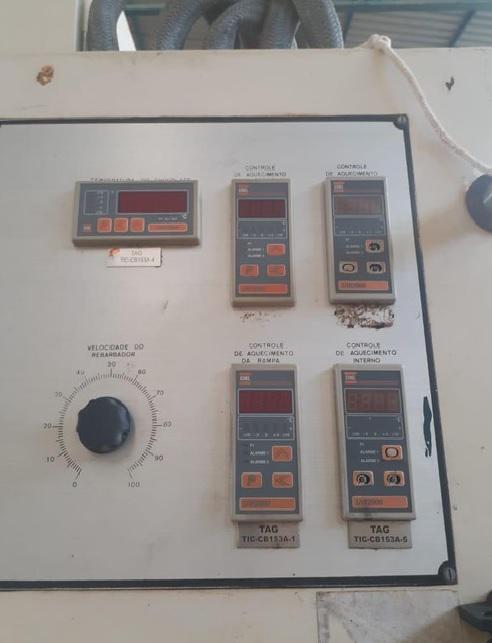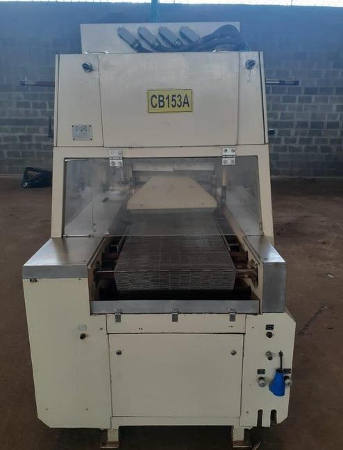 Cobrideira de chocolates 620 mm marca Sollich. Modelo: EM 620 Dimensões do Equipamento: - largura: 1350 mm - comprimento: 2000 mm - altura: 2400 mm - largura da esteira: 620 mm - comprimento da esteira: 1750 mm