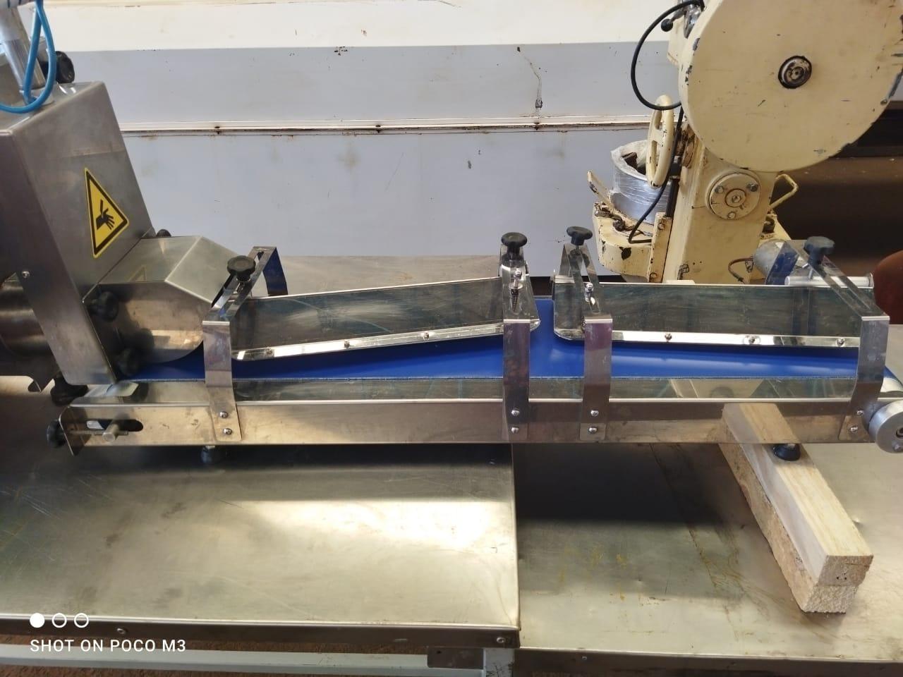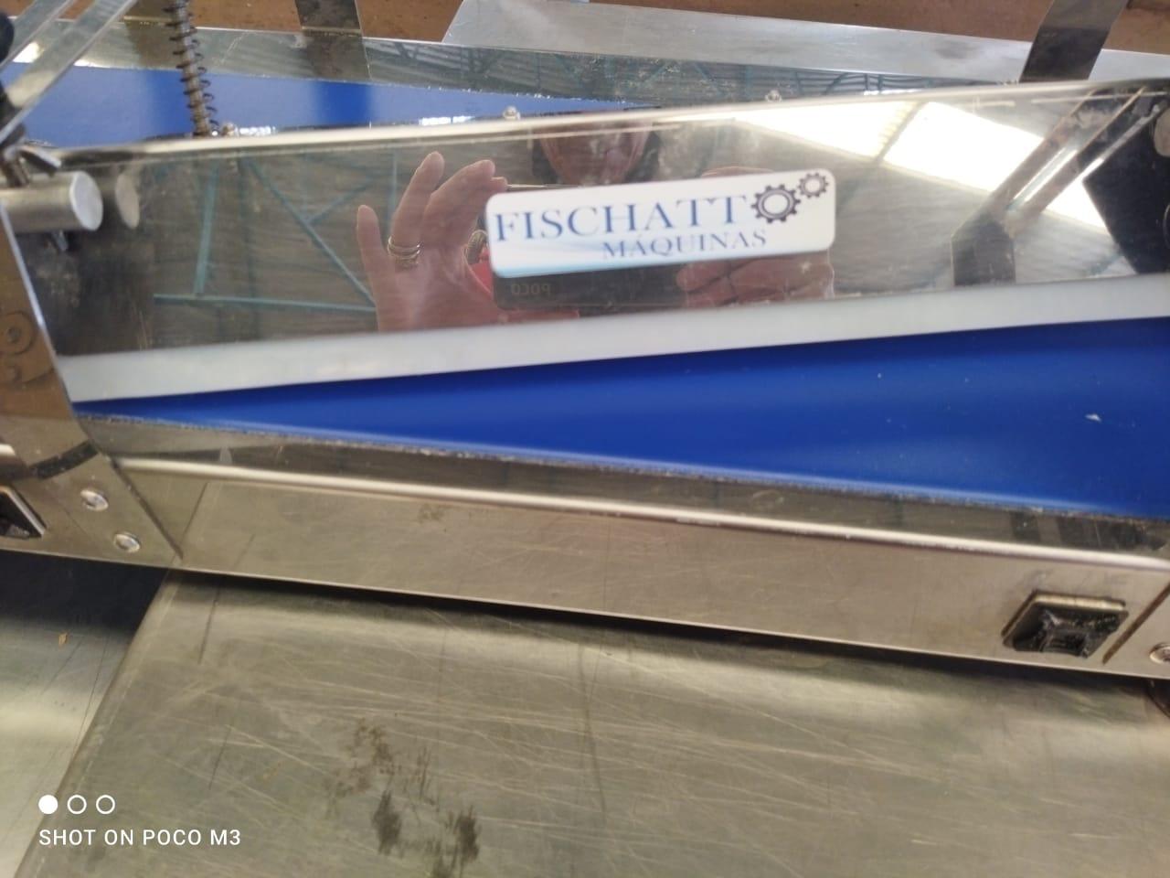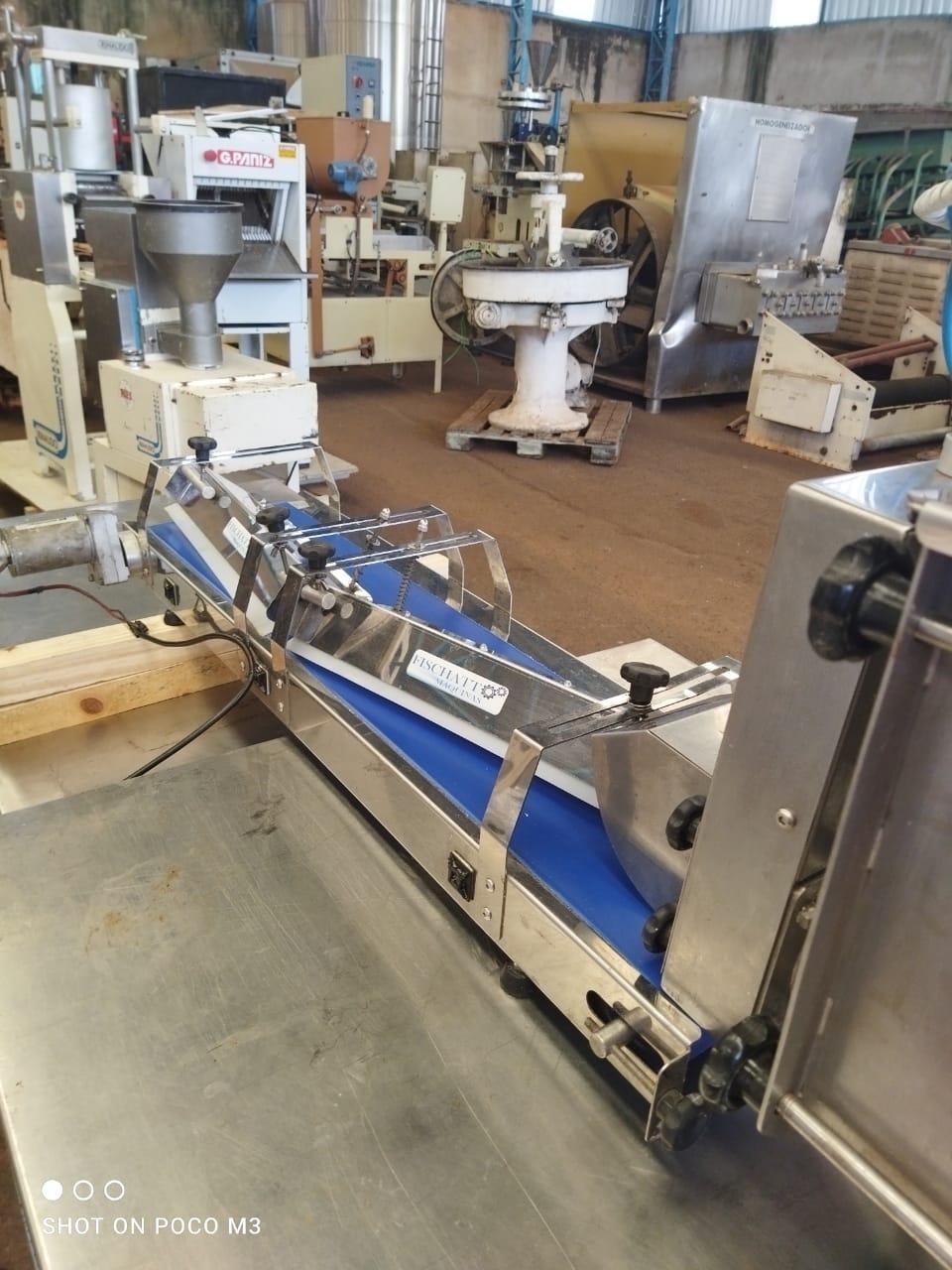 Divisora boleadora automática 120 kg marca Fiscatto. Modelo: DB 25. Equipamento utilizado para linha de fabricação de pães, pizzas, esfihas e outras massas. Boleia e divide massas entre 20 g e 400 g. Características: - Altura: 510 mm - Largura: 410 mm - Comprimento: 1,60 metros - Largura da Esteira: 250 mm - Comprimento da Esteira: 900 mm - Capacidade da Cuba: 20 kg - Gramatura: 20 g à 400 g - Material: Inox