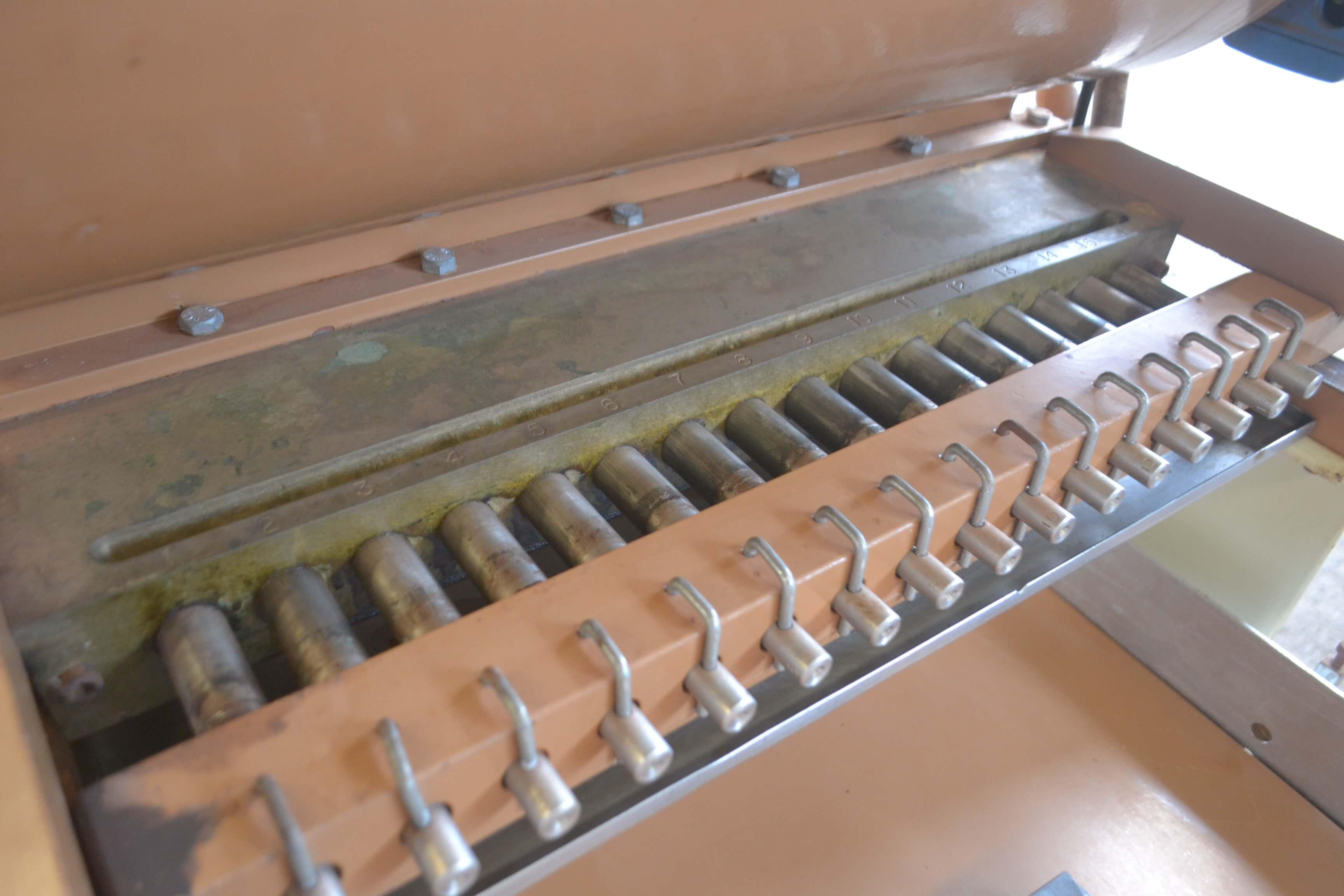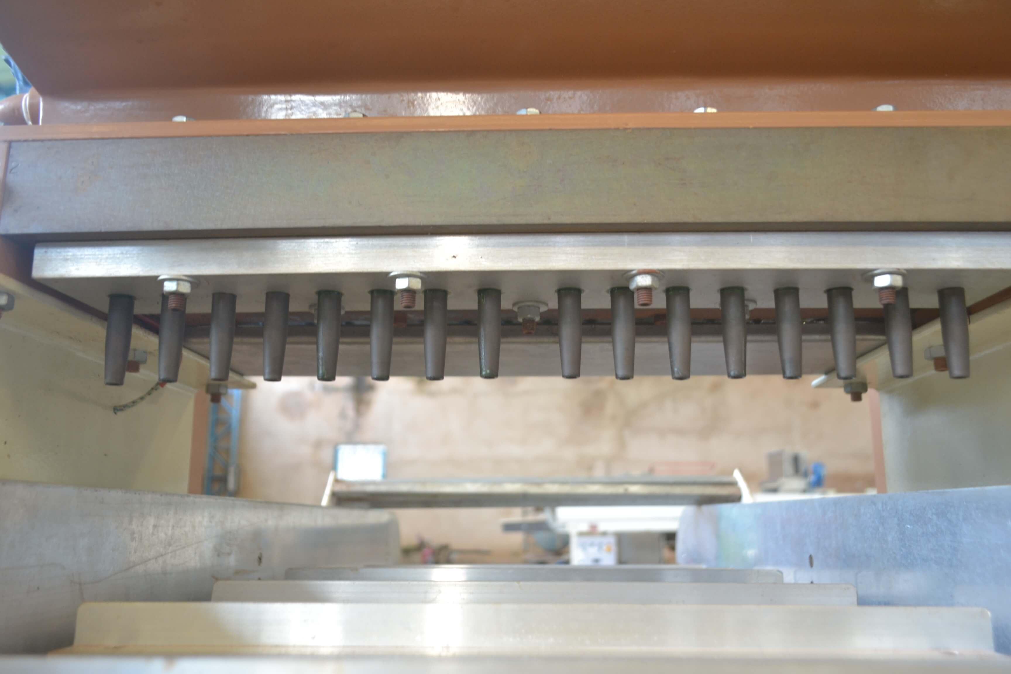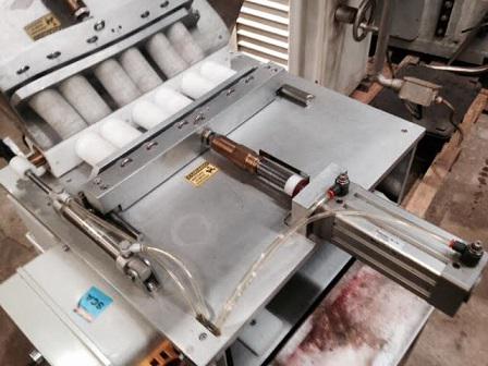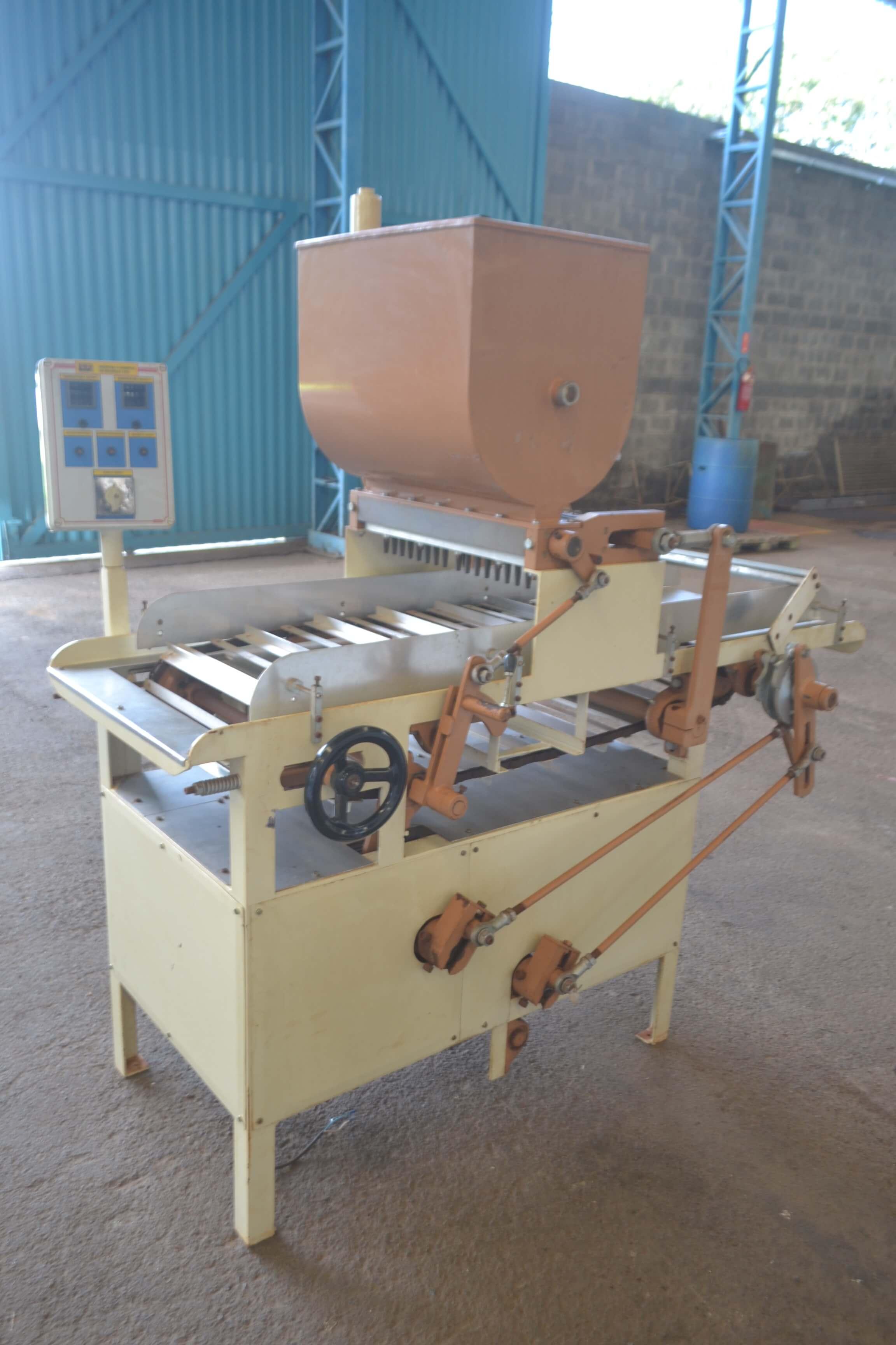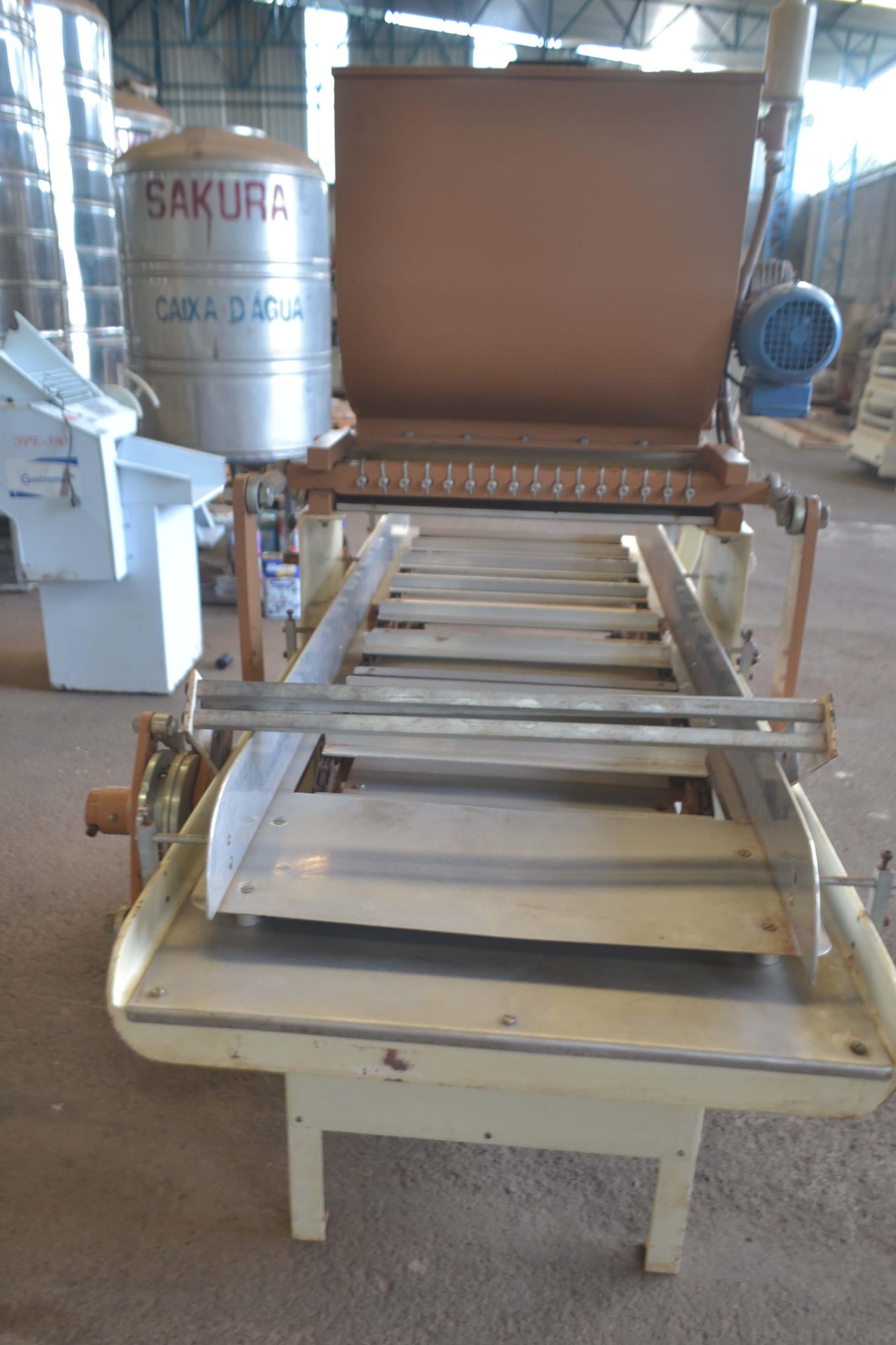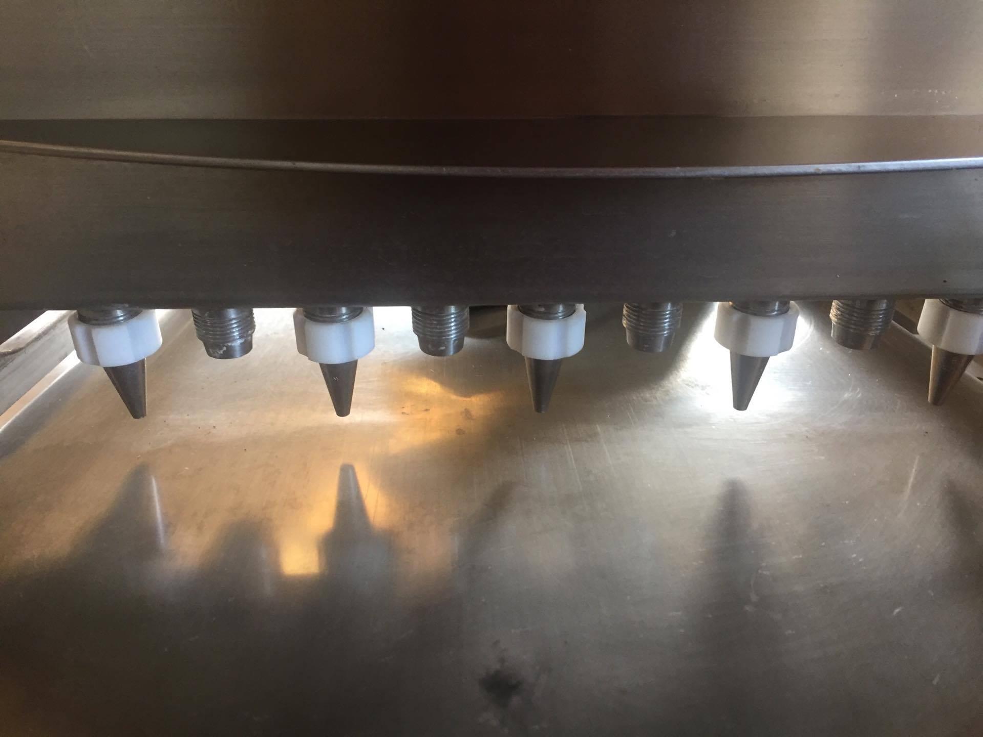 Dosadora de chocolate 16 bicos marca JLC. Equipamento com a cuba encamisada e aquecimento à vapor. Características do Equipamento: - largura: 950 mm - comprimento: 1800 mm - altura: 1850 mm - largura trilho: 450 mm - Equipamento com 16 bicos - voltagem: 220 V trifásica