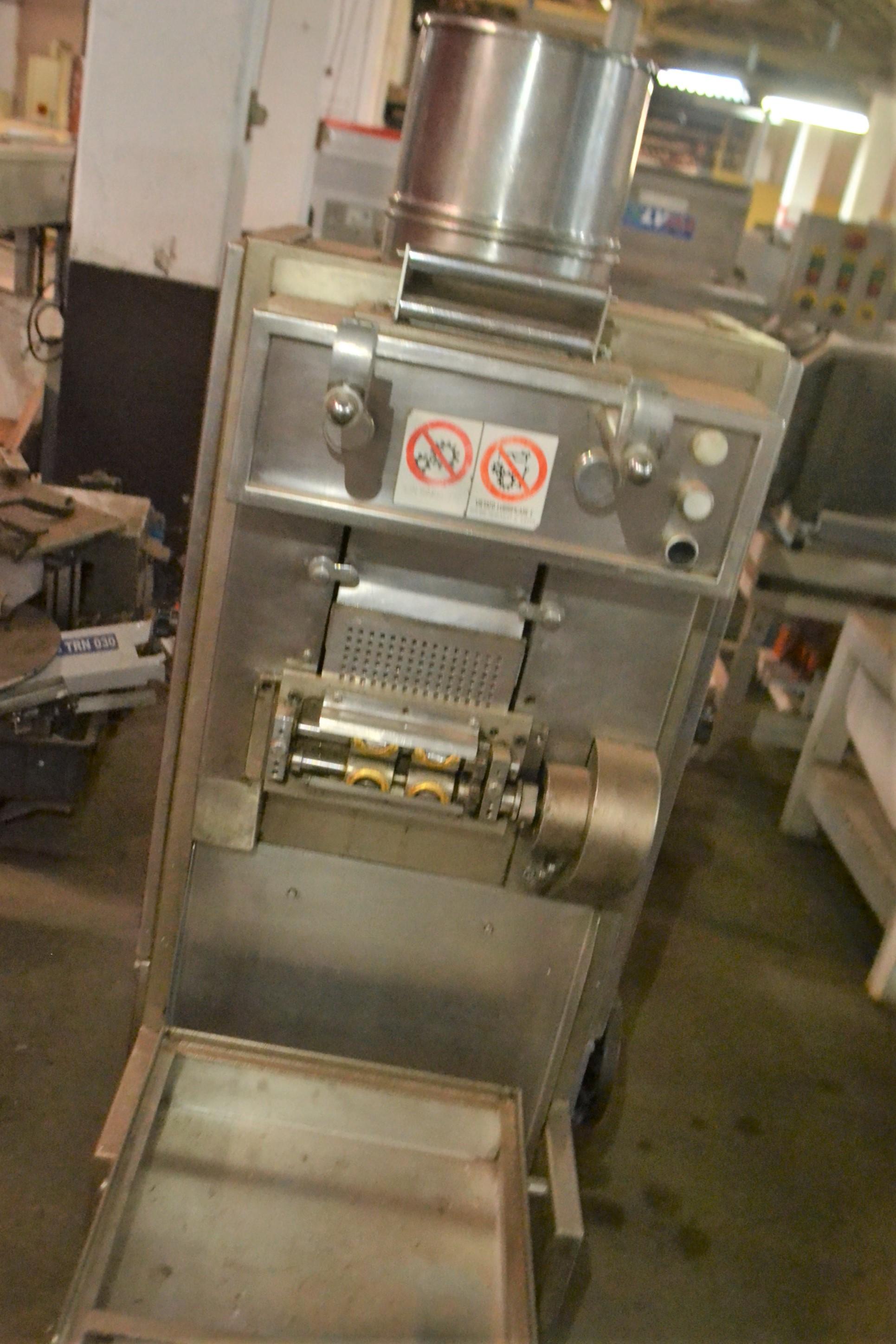 Ravioleteira capacidade até 140 Kg hora marca Rinaudo Hijos. Modelo: RM-100. Origem: Argentina. Carcaterísticas: - Altura: 1.60 m - Largura: 550 mm - Comprimento: 750 mm - Peso: 170 Kg - Voltagem: 380 V trifásica - Motor: 0,75 HP/1500 RPM