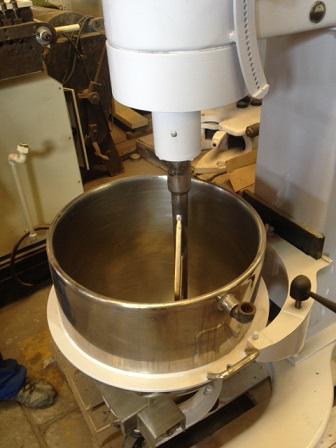 Batedeira com capacidade para 100 litros e aquecimento à resistência. Bojo em aço inox e batedor 'tipo raquete'.