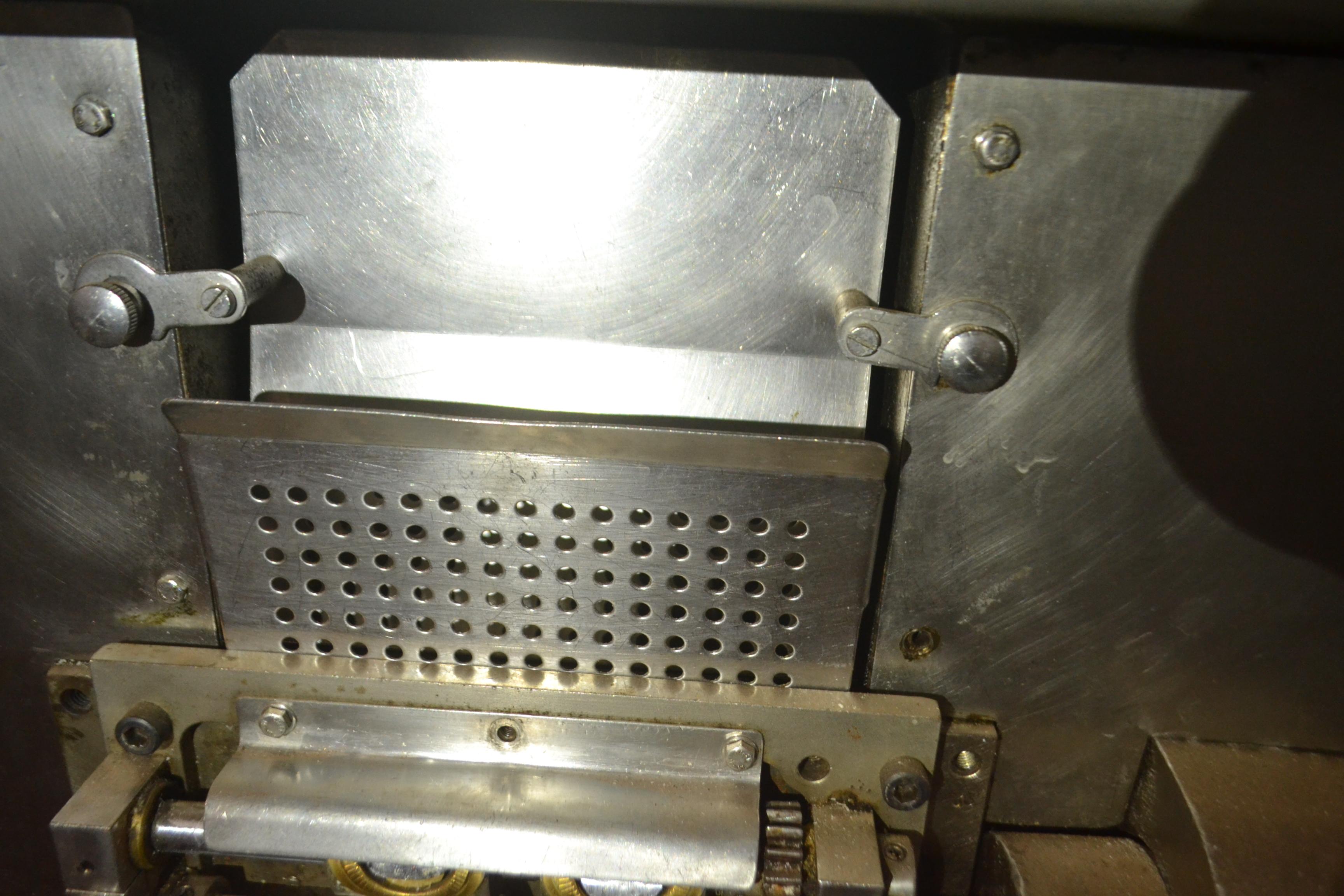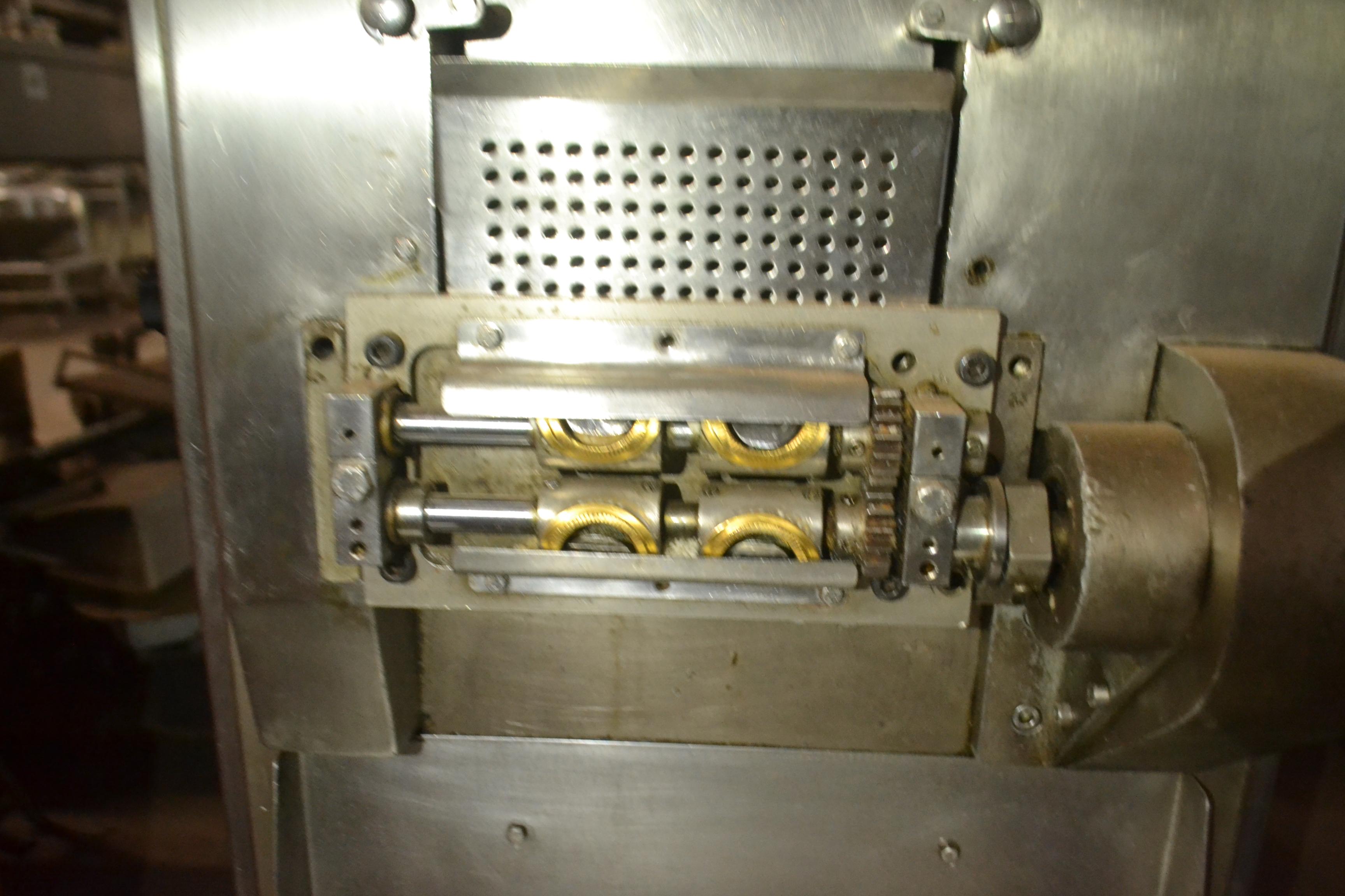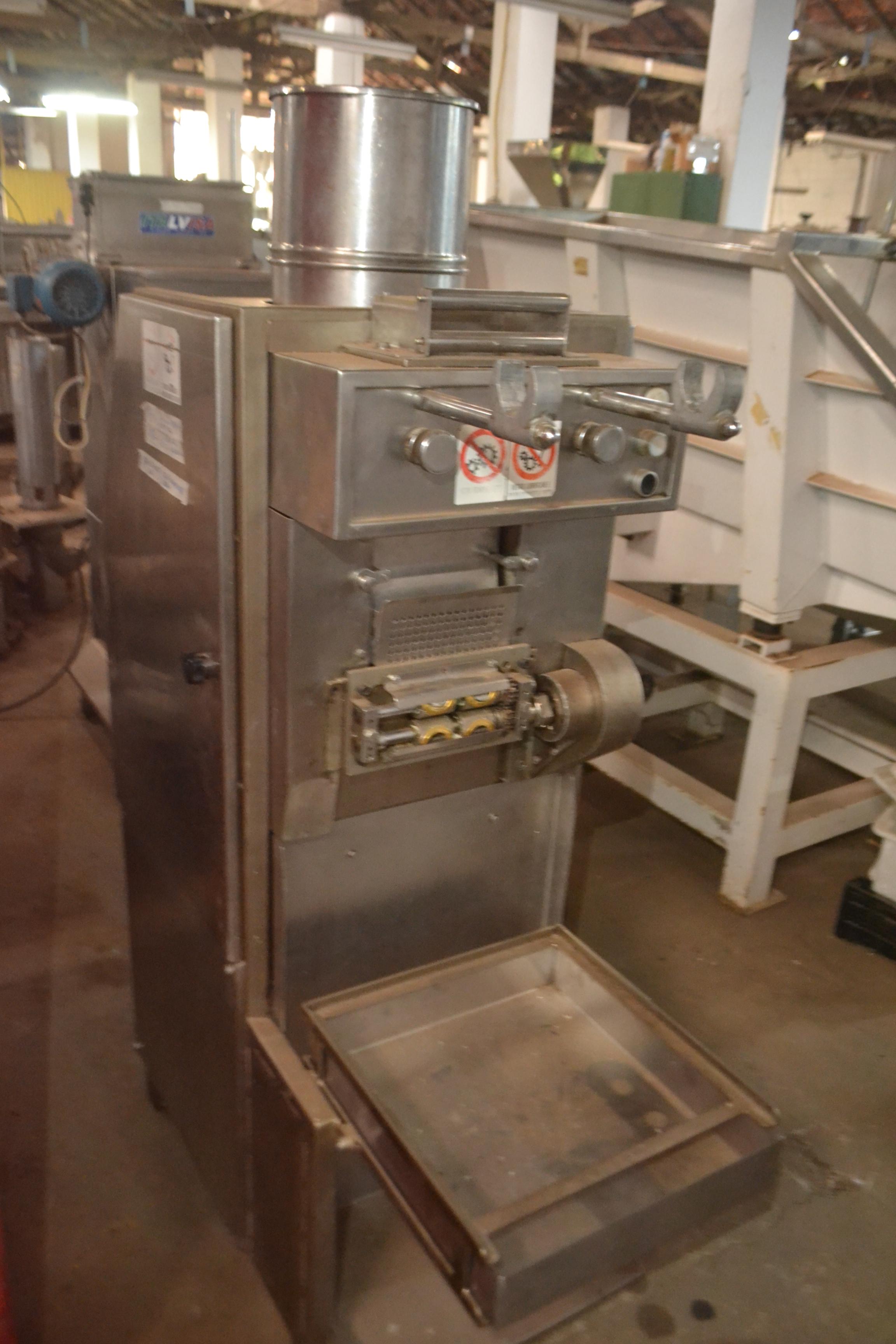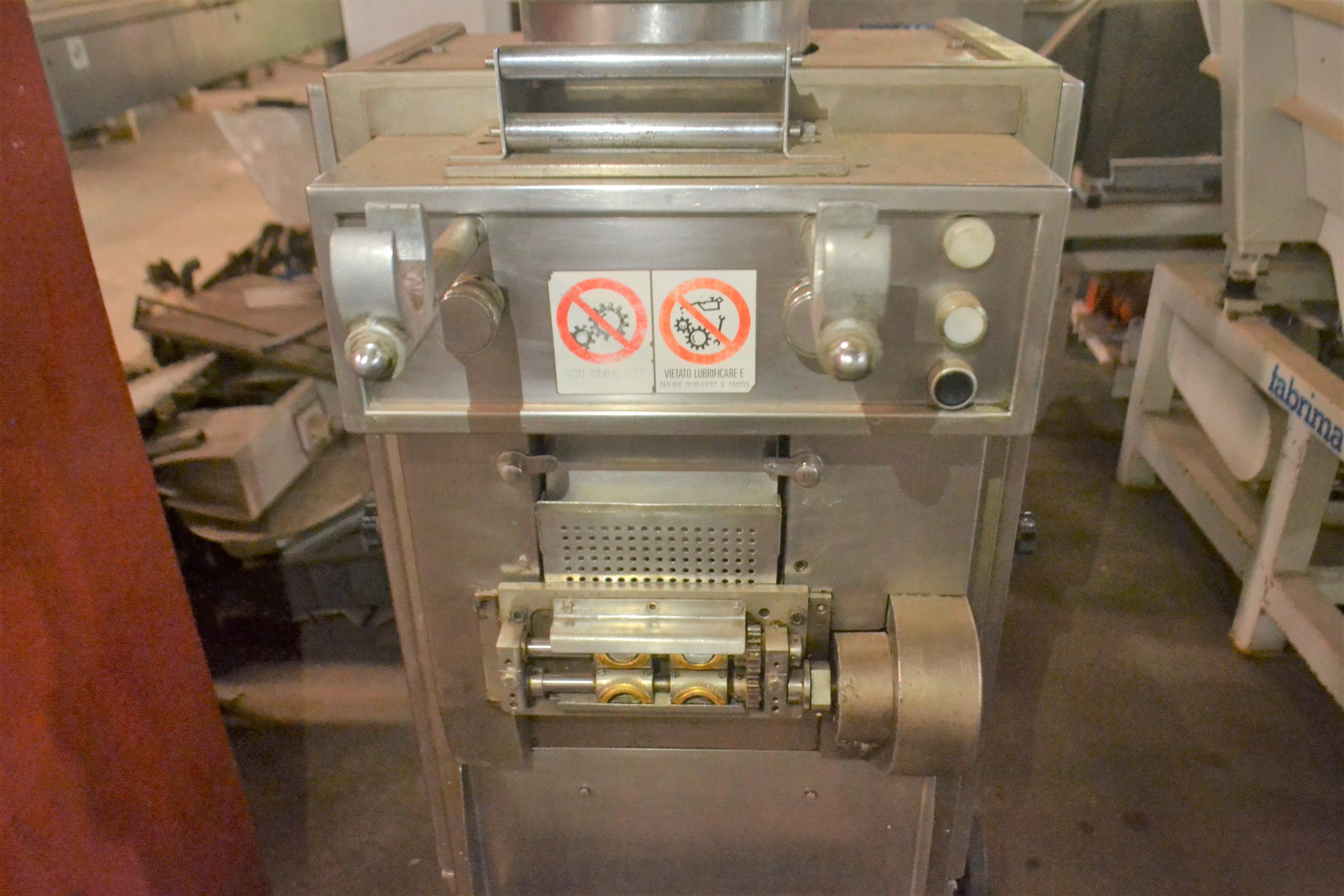 Capeleteira e ravioleteira 20 Kg/h marca Torresani. Modelo: MR 135. Equipamento com duas vias, em aço inox total. Largura da chapa: 135 mm. Recheio: 3 g. Voltagem: 220/380 v. Origem: Itália.