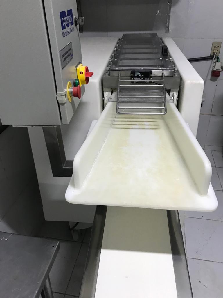 Cilindro de 7 rolos 600 mm marca Toshiro. Equipamento com regulagem de abertura dos cilindros (até 4 mm), com esteira e sistema de segurança (relês e sensores) em conformidade com a NR12. Motor 5cv,4p,60hz.