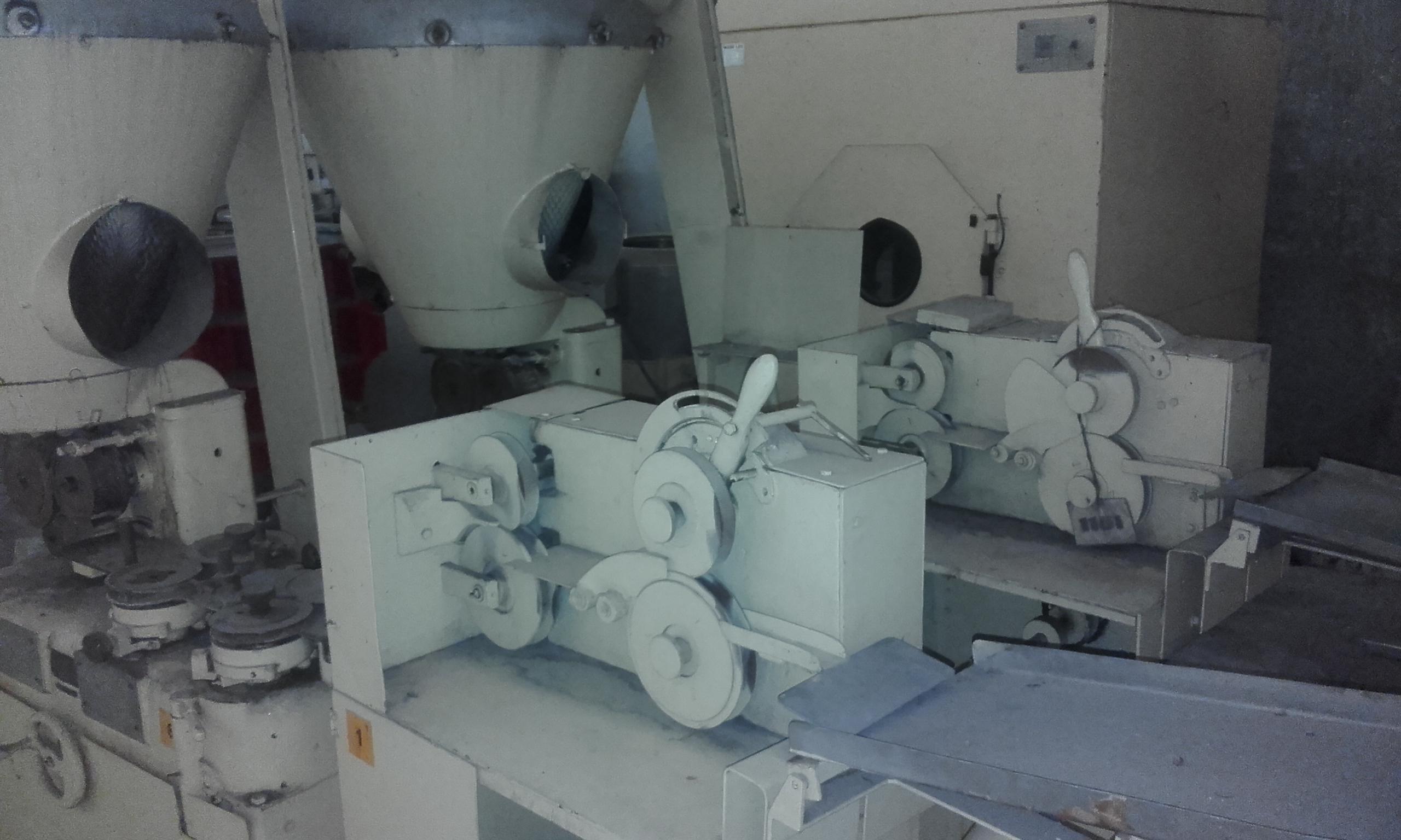 Conjunto de fabricação de balas composto de bastonadeira e trafila acoplados. Marca Hansella Werk.
