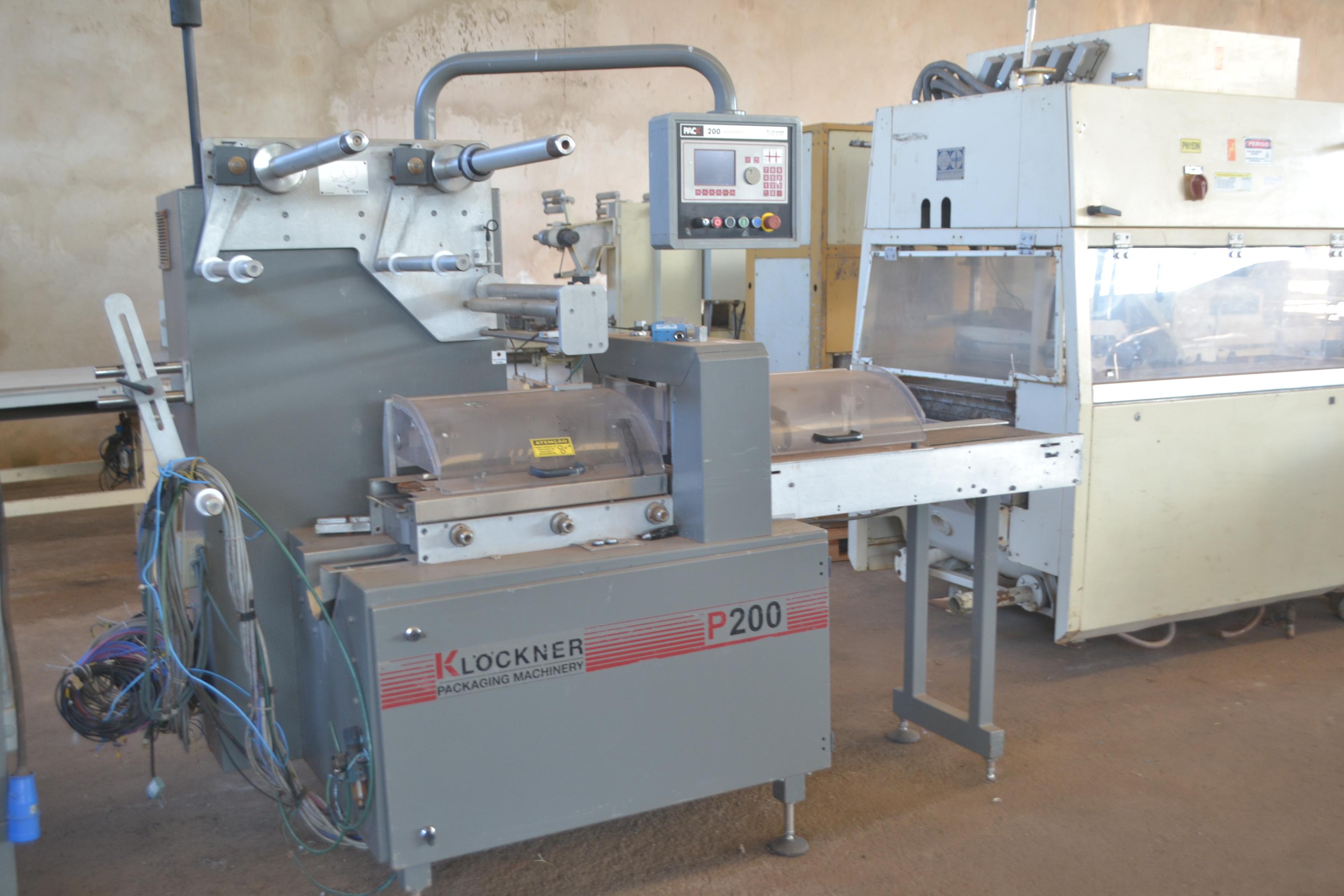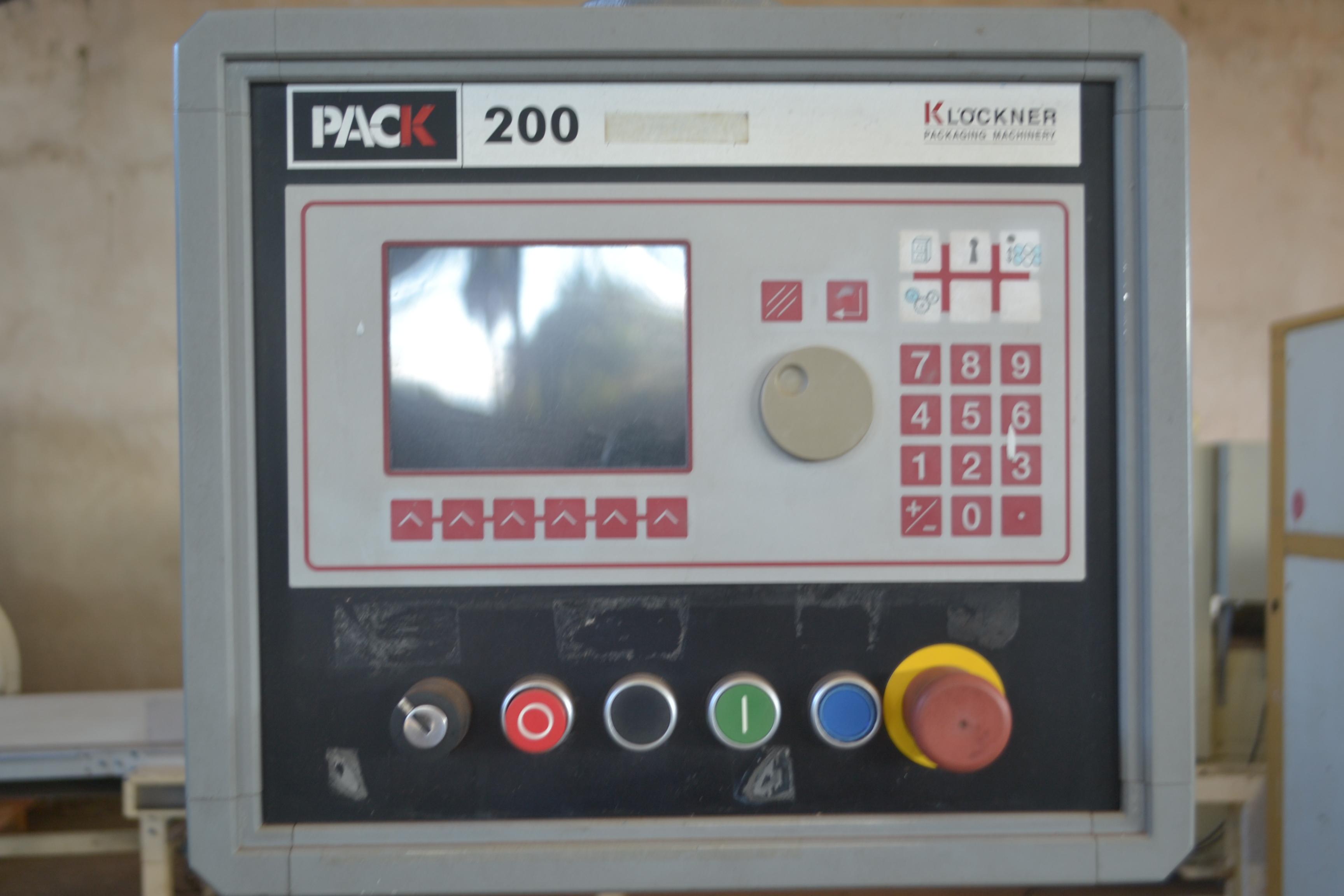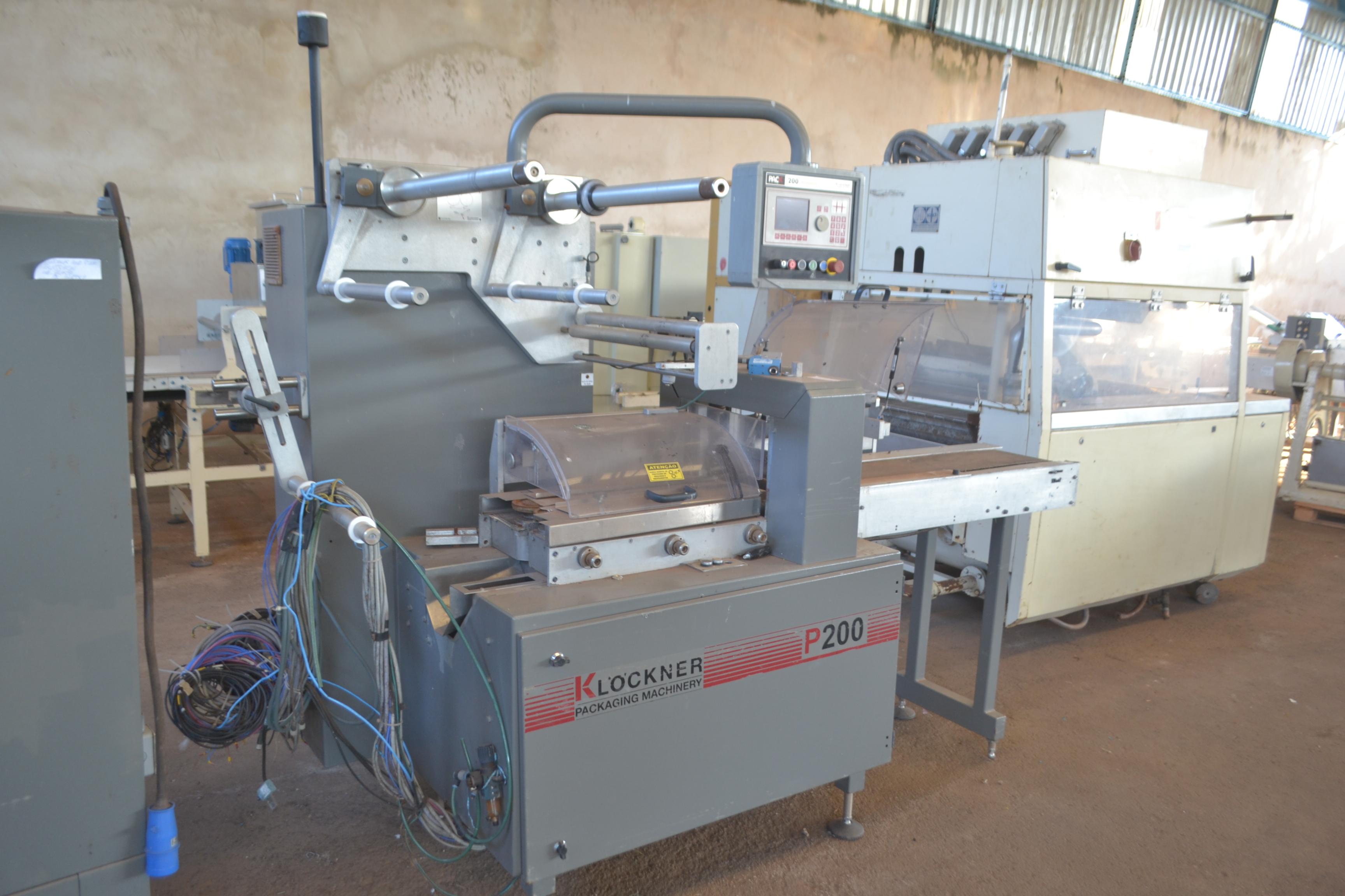 Embaladora Flowpack marca Klockner. Modelo: Pack 200. Produção: até 350 embalagens/minuto. Embaladora de fluxo horizontal, com servo motor, para filme selável a frio ou a quente, indicada para produtos de panificação, confeitaria, chocolates e outros. Temperatura máxima dos rolos seladores: até 350 graus. Temperatura máxima das lâminas seladoras: 350 graus. Atende a 24 formatos diferentes de pacotes.