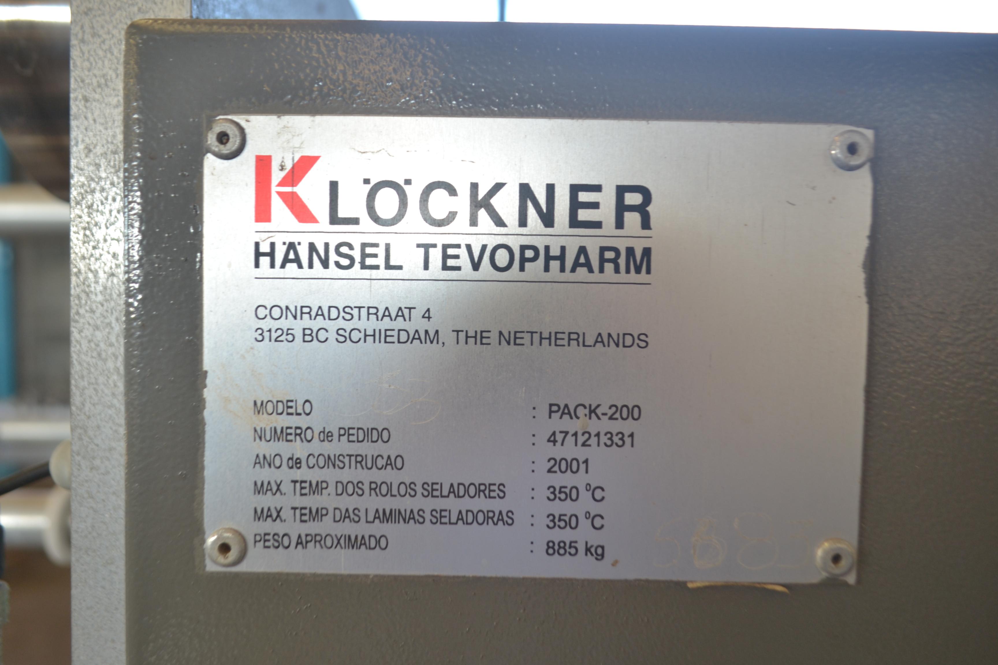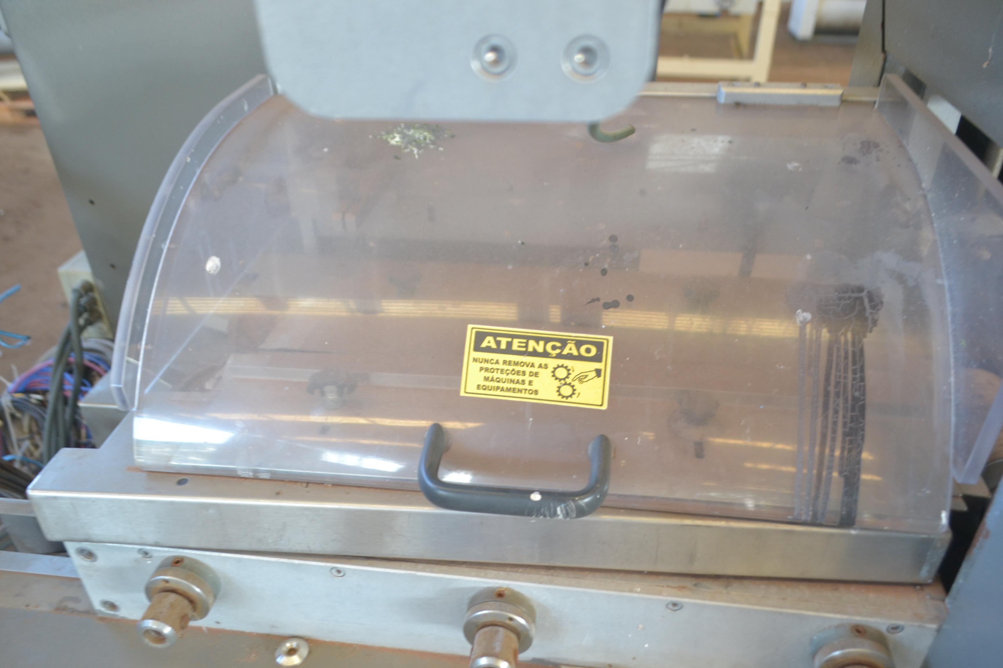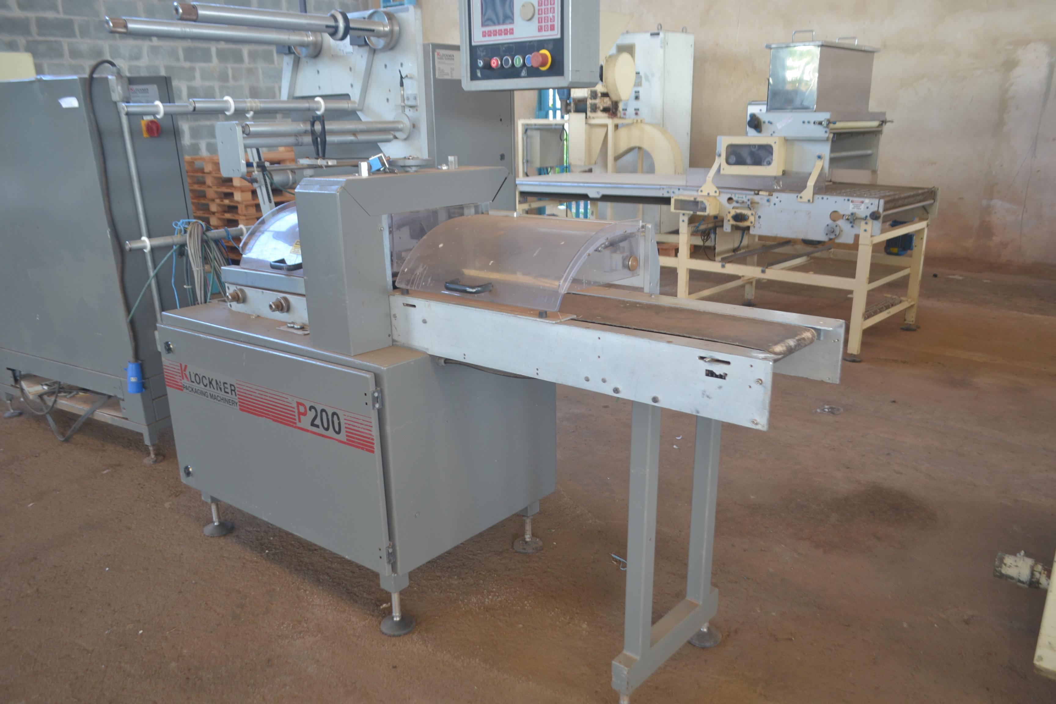 Embaladora Flowpack marca Klockner. Modelo: Pack 200. Produção: até 350 embalagens/minuto. Embaladora de fluxo horizontal, com servo motor, para filme selável a frio ou a quente, indicada para produtos de panificação, confeitaria, chocolates e outros. Temperatura máxima dos rolos seladores: até 350 graus. Temperatura máxima das lâminas seladoras: 350 graus. Atende a 24 formatos diferentes de pacotes.