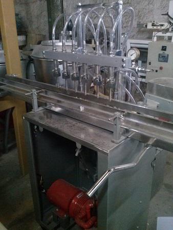 Envasadora de 6 Bicos em aço inox, com acionamento à manivela.