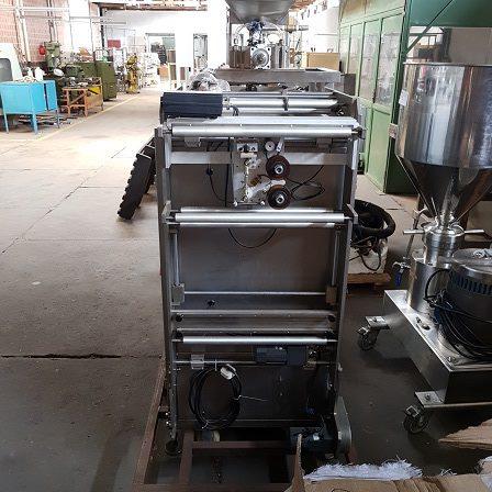 Envasadora de geladinho e outros marca Premec. Equipamento em aço inox, com uma via, para envase de produtos líquidos e viscosos. Produção aproximada: 2.000 unidades/hora (variação ocorre de acordo com a densidade e temperatura do produto, além da composição do filme). Sistema elétrico por CLP com IHM touchscreen. Largura embalagem: 3.5 cm.