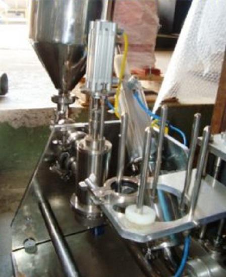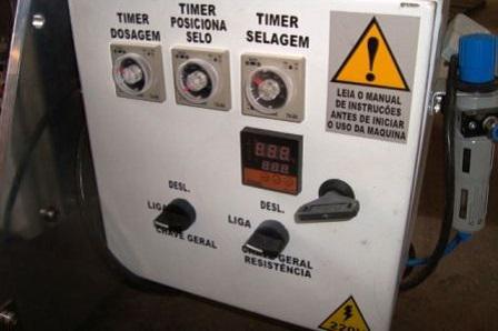 Envasadora marca Dmom modelo DMS 500 SA 220 W, Copo de 100 mm, envasa, sela e data aproximadamente 400 potes/hora de produtos como iogurte, geleia, doce de leite e outros.