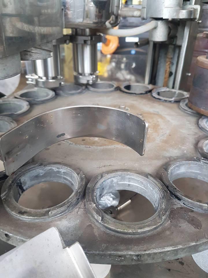 Máquina posiciona o copo ou pote na mesa de envase, envasa, posiciona o selo, sela, data e extrai os copos e potes automaticamente, produzindo até 2500 unidades por hora de acordo com o diâmetro da embalagem ou volume envasado. (se necessário, coloca sobre tampa também).