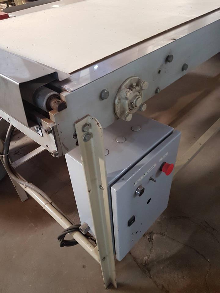 Esteira com controle de velocidade e inversor de frequência. Medidas: 5 m de comprimento; 1,20 m de altura e 40 cm de largura.