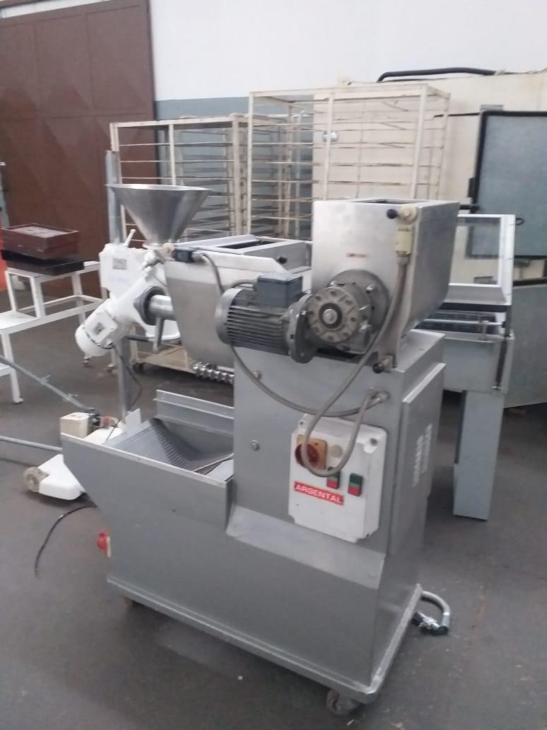 Extrusora Argental 50 Kg/h. Equipamento destinado a produção de massas curtas. Acompanha trafila de macarração Fusilli. Aço inox total.