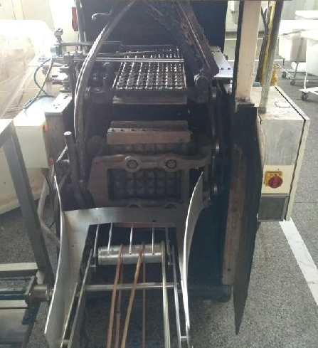 Forno Haas com 18 placas para bombom. Modelo: B 714. Com carrinho de injeção de massa e sistema de resfriamento de placas.