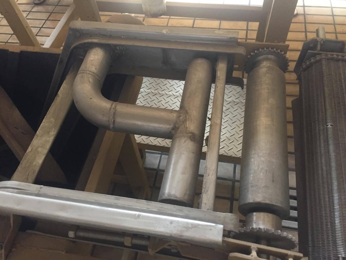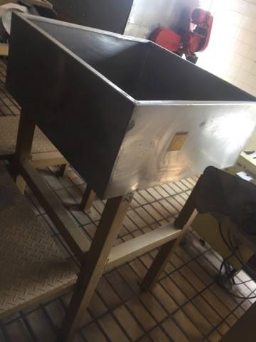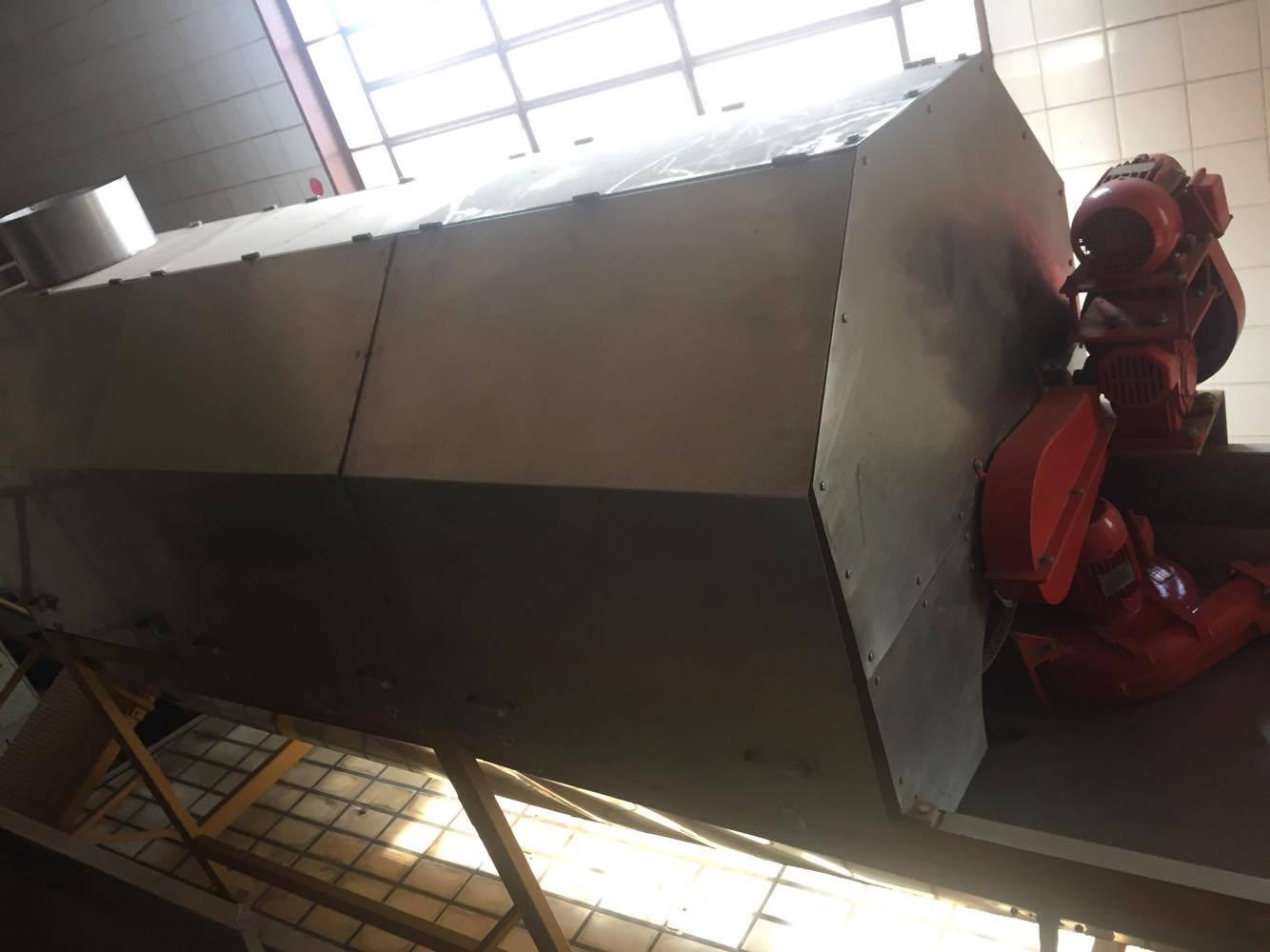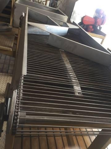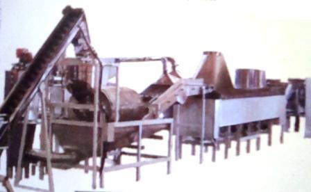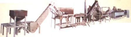 Linha automática para produção de batata frita e batata palha marca Inbramaq, Modelo PX 200. Possui silo com calha dosadora que alimenta a esteira de talisca e descascador rotativo contínuo; dosador de rosca contínuo com espalhador de sal/condimentos acoplado a um tambor rotativo especial; alimentador com rosca helicoidal acoplado de tanque com água;  sensor de fluxo de produto e fritador contínuo com sistema de paletas especiais para transporte de batata frita; esteira no final do tritador (para melhor homogeinização de fritura) e hélice com rotação variável. Produção: até 250 kilos hora.
