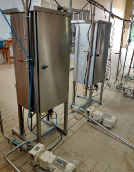 Duas linhas de fabricação de cremosinho e geladinho marca Dmon capacidade 200 unidades/hora. Linha composta de tanque reservatório de 300 litros e bomba para transferência do produto.