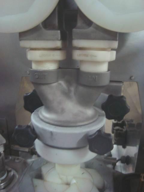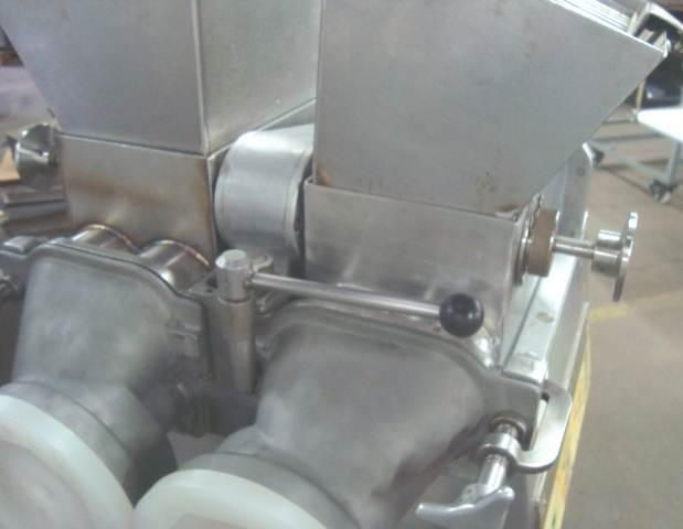 Máquina de salgados marca Rheon. Produz mini coxinhas e bolinhas, além de brigadeiros e trufas. Possui extrusora de massas de salgados e doces modelo KN 110. Produção: 40 peças min.