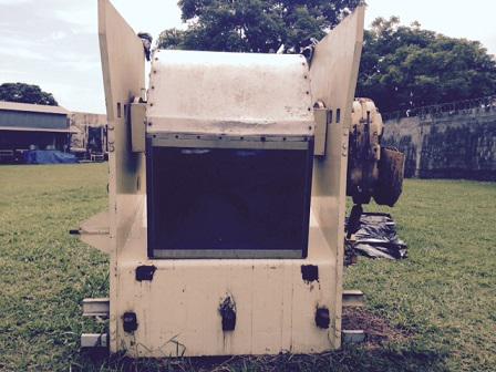 Misturador com capacidade de 500 Kg e sistema de tombamento hidráulico. Área interna e mexedor em aço inox.