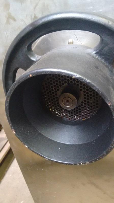 Moinho de amendoim com 'boca' de 130 mm. Motor trifásico, 7,5 cv.