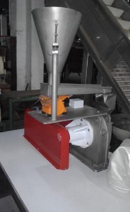 Moinho universal em aço inox Netzsch com silo e calha vibratoria com motor de 3 CV.