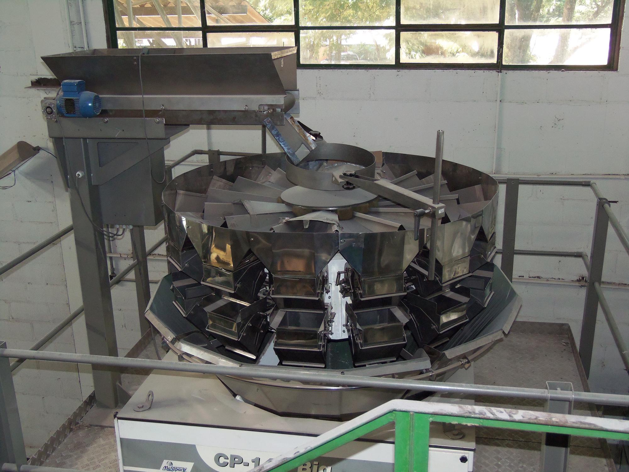 Multicabeças Masipack modelo CP 14 Big. Conjunto composto de balaças, estaleiro e esteira elevatória. Comprimento esteira: R6 m. Ano de abricação: 2011.