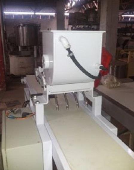 Pingadeira para chocolates e doces com 4 bicos.  Medidas:  0,35 m de largura x 2,30 m comprimento.