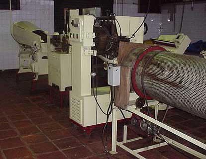 Todas as máquinas e equipamentos necessários para produção de pirulitos, desde a mistura da massa até a embalagem.