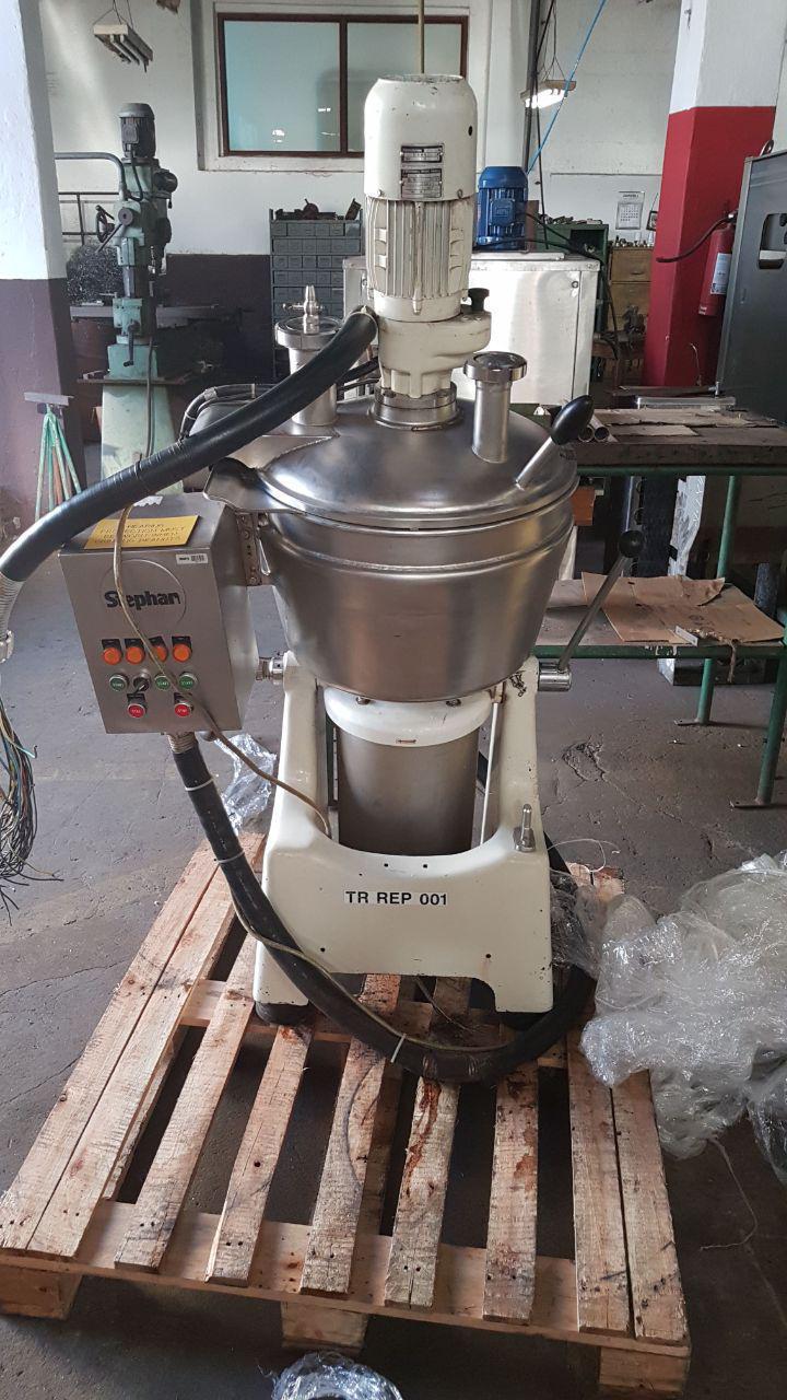 Processador Universal Stephan Food Processing Machiney 65 litros. Equipamento encamisado, com capacidade de 65 litros, com raspador motorizado. Ideal para aplicações que demandam aquecimento, tais como laticínios (requeijão cremoso, queijos processados, creme de ricota, minas frescal, cream cheese, entre outros). Aquecem o produto através de vapor direto e/ou indireto e podem resfriar através da camisa dupla. Equipamento tritura, mistura, prepara, terminiza, funde, pasteuriza, esteriliza e emulsifica à vácuo, evitando a formação de bolhas de ar e oxidação no produto (aumentando shelf life). Equipamento fabricado na Alemanhã.