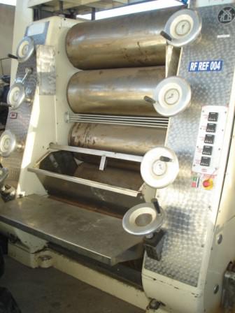 Refinador de 5 rolos, marca Jaf Inox. Equipamento em aço inox. Medidas dos rolos: 0,80 de comprimento X 1,50 de diâmetro.