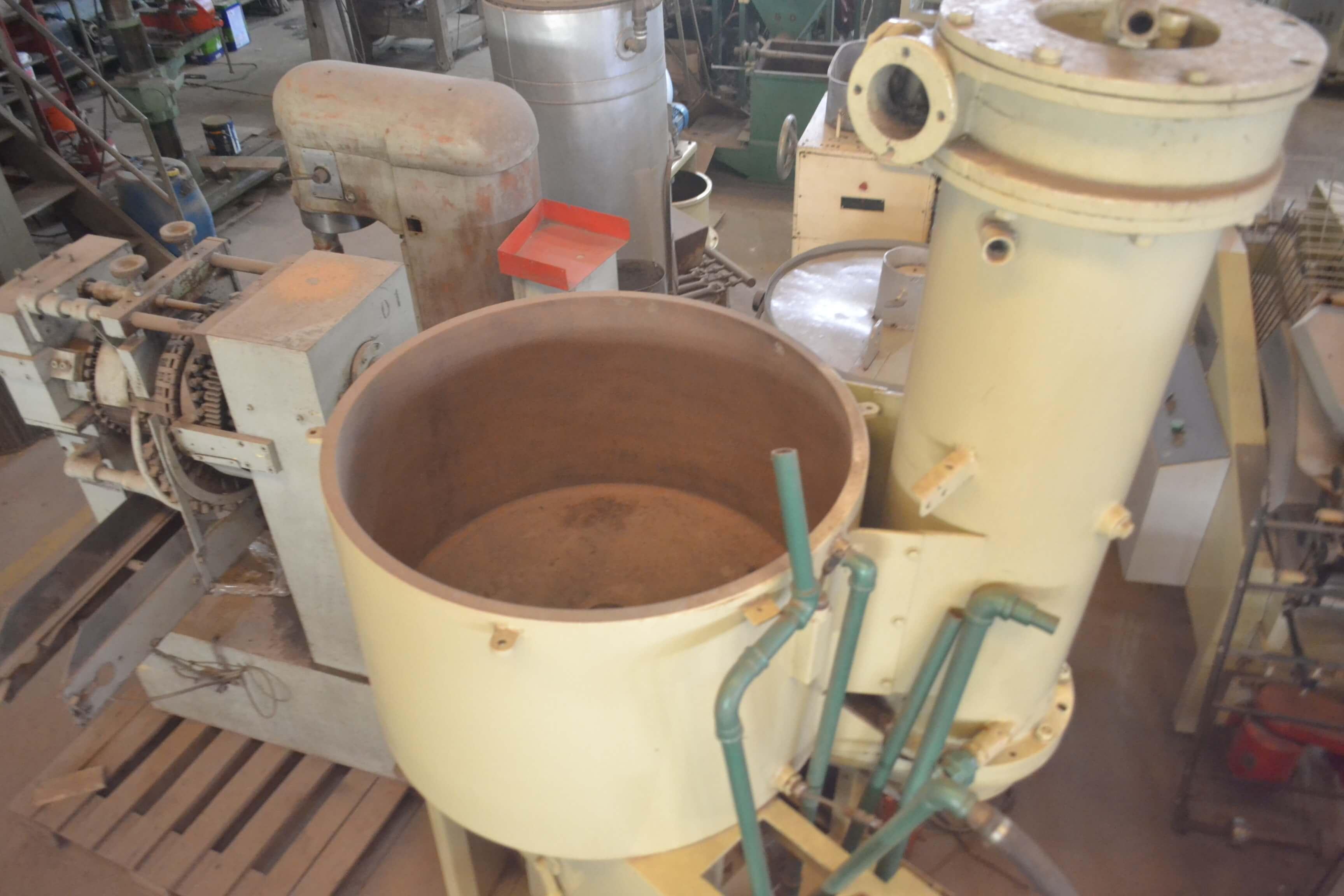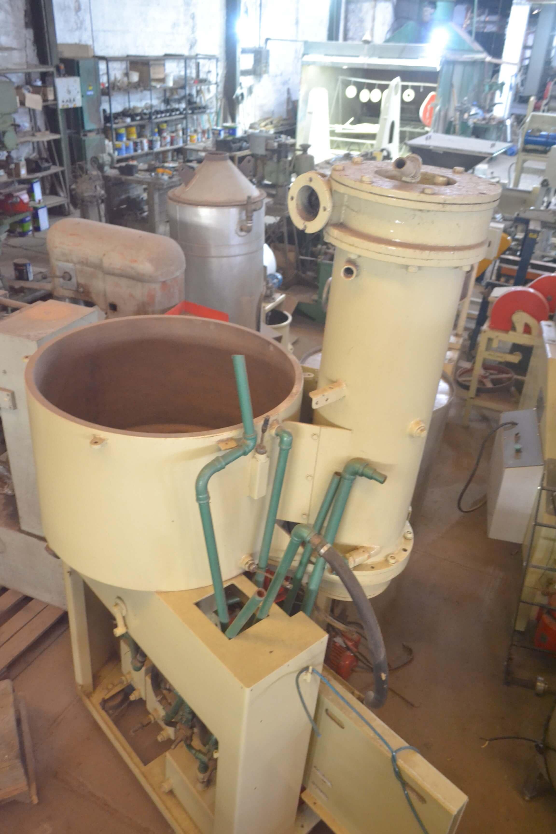 Refinador de Esferas com Temperadeira Acoplada Dimensões do Equipamento: - altura: 2350 mm - largura: 1200 mm - comprimento: 1100 mm - diâmetro bojo: 800 mm - altura bojo: 500 mm