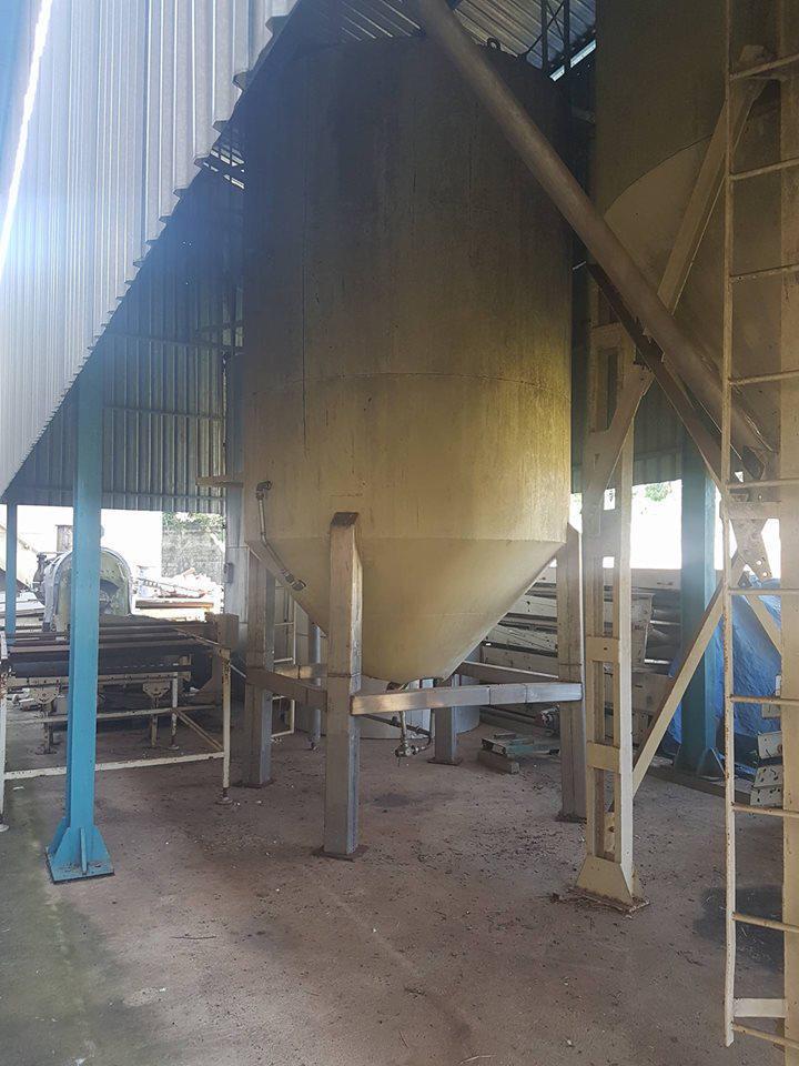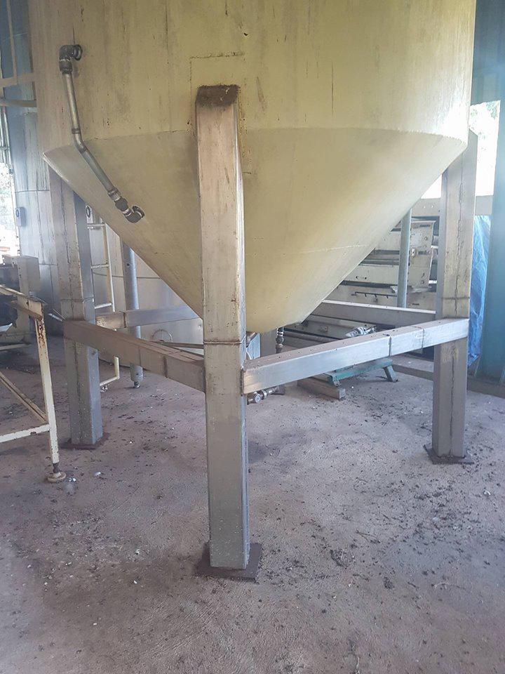 Silo para glucose. Constituido em aço carbono com área interna em inox, isolado e encamisado. Suporte (pés) em inox.