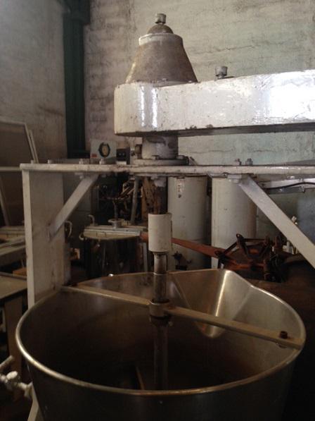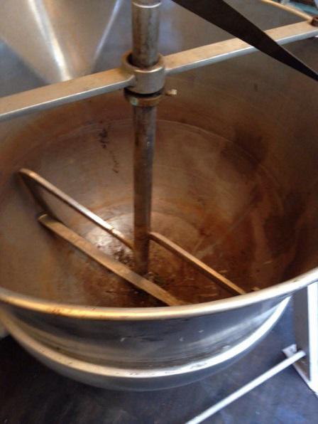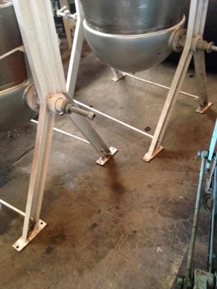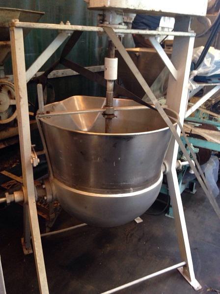 Tacho aberto, em aço inox, basculante, encamisado, com capacidade de 200 litros.