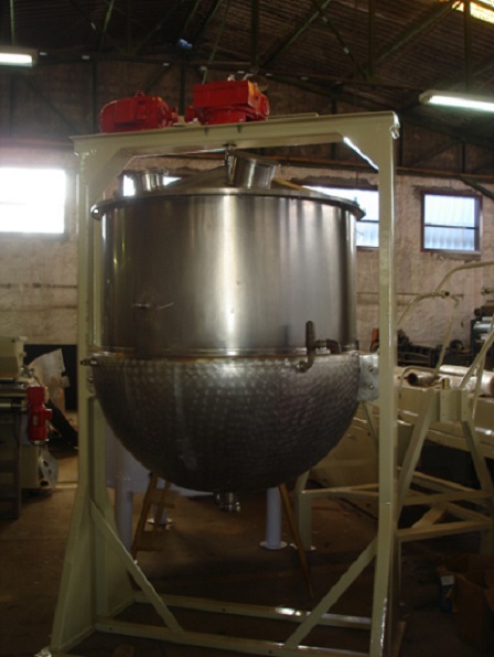 Tacho cozinhador de 1000 litros. Equipamento encamisado, em aço inox, fixo..