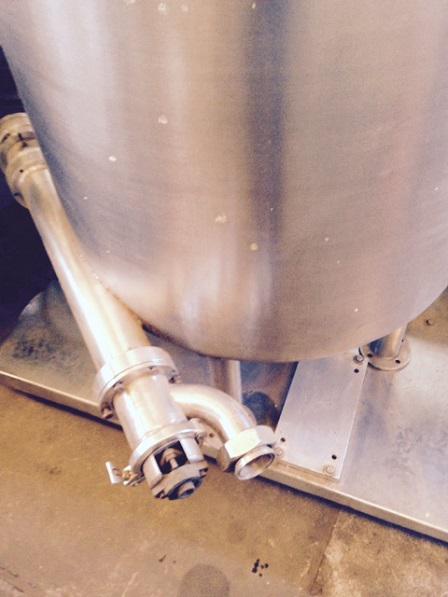 Tacho misturador com bomba de transferência e misturador em aço inox. Extração do produto via rosca.