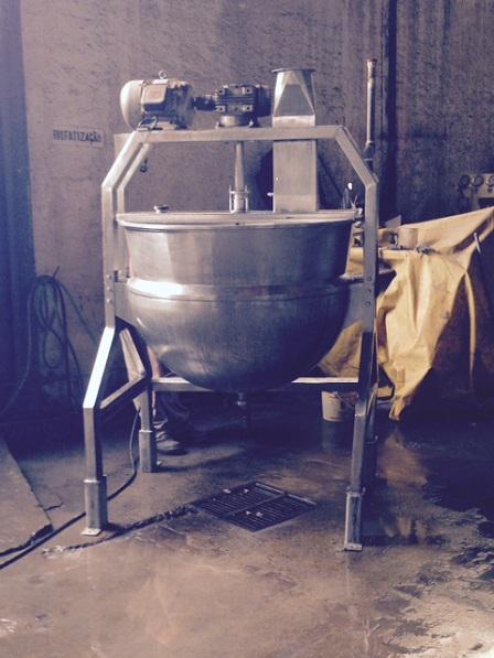 Tacho à vapor em aço inox, encamisado, com capacidade de 700 litros.