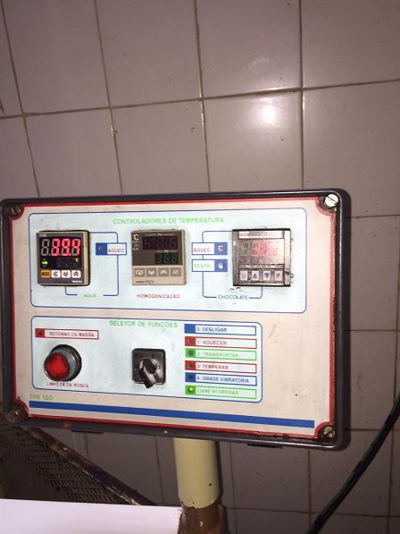 Temperadeira de chocolates capacidade 150 Kg/hora, marca Hebleimar. Acompanha tubo de homogeneização para abastecer dosadora.