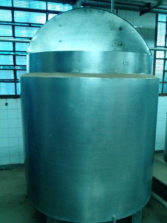 Tina de maturação com capacidade para 1000 litros, com agitador, constituída em aço carbono 304, encamisada e isolada. Equipamento ideal para aquecimento ou resfriamento através de água quente ou gelada.