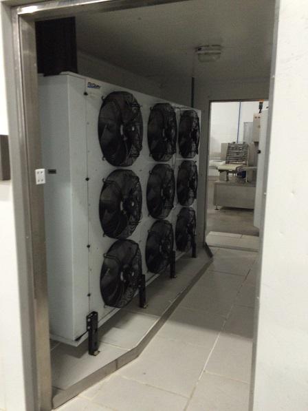 Ultra freezer modular com isolamento em poliuretano marca São Rafael. Dimensões: 2,5 x 3,70 x 2,40m. Ultra freezer revestido de placa pré-pintada, para congelamento rápido com temperatura de - 30º. Especificações técnicas: 01 (um) evaporador de 2,81 x 0,80 x 2,05 m e tensão 220 v; 01 (uma) unidade condensadora de 1,90 x 1,56 x 1,0 m, tensão 220 v; 09 (nove) motores ventiladores Ziehl-ABEGG Soprador. Equipamento seminovo.