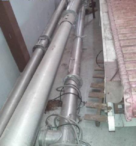 Alimentador com rosca de 5 metros e silo. Comprimento: 5 metros em aço inox.