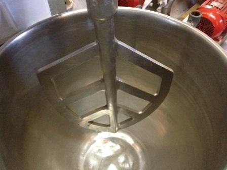 Batedeira com capacidade para 100 litros e aquecimento à resistência. Bojo em aço inox e batedor 'tipo raquete'.