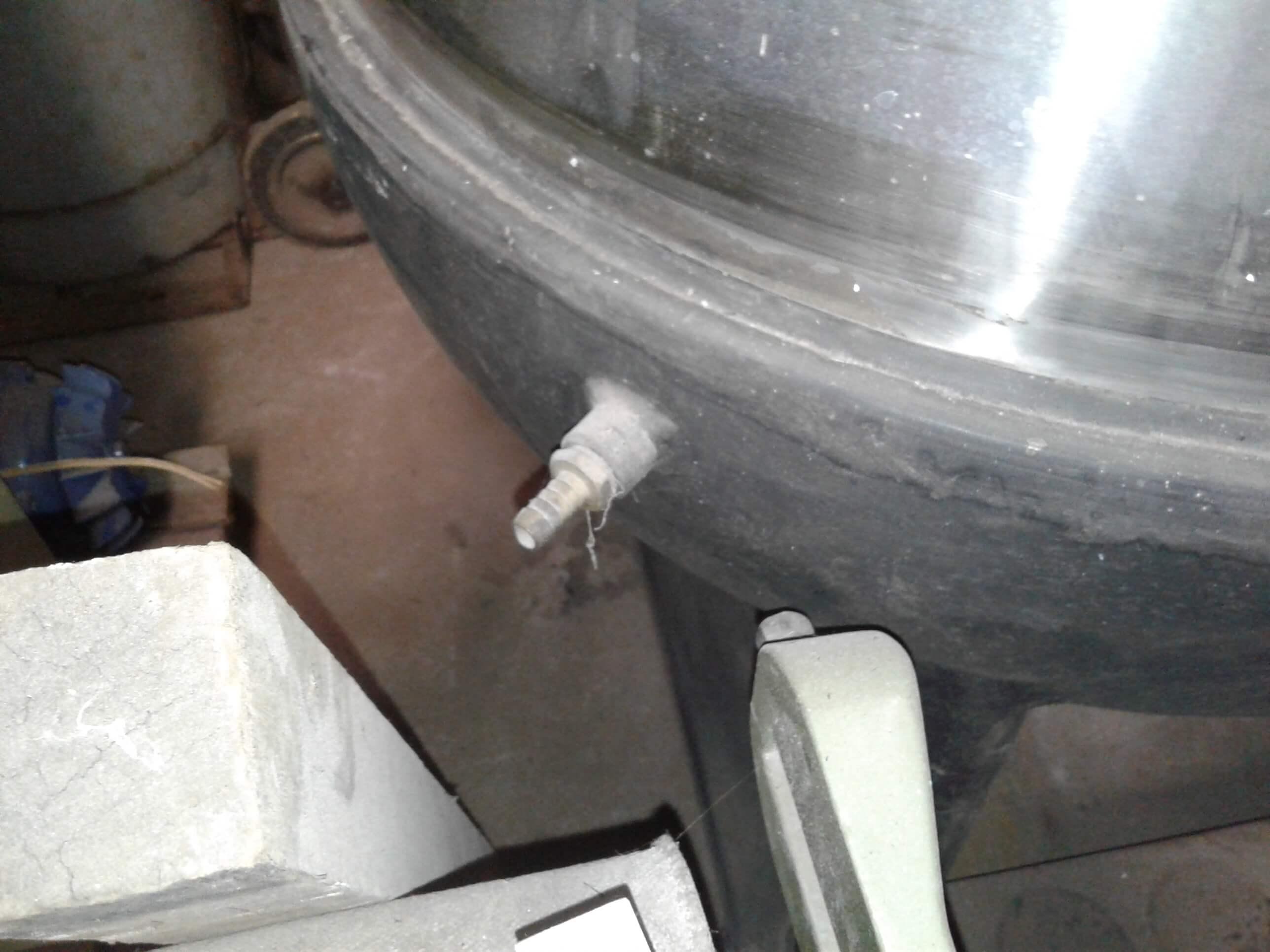 Equipamento em aço inox, encamisado ('meia cana') com camisa externa em aço carbono.