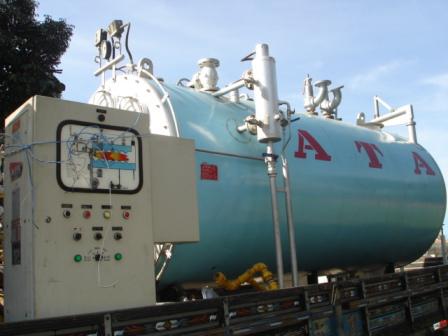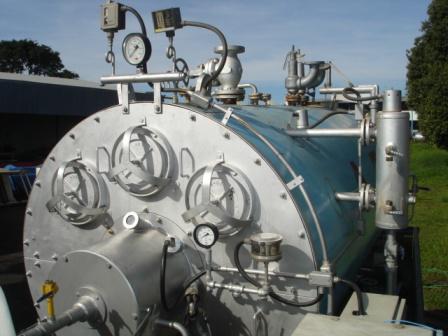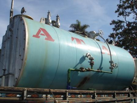 Caldeira ATA, modelo Flamotubular Horizontal; ano de fabricação, 1990; capacidade de 2.000kg de vapor/hora e pressão de teste hidrostático de 15,82 kgf/cm².