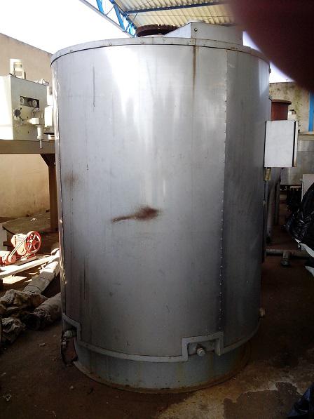 Tanque derretedor de gordura com capacidade para 2500 litros, em aço carbono interno.