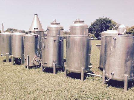 Tanques reservatórios em aço inox com capacidades diversas.