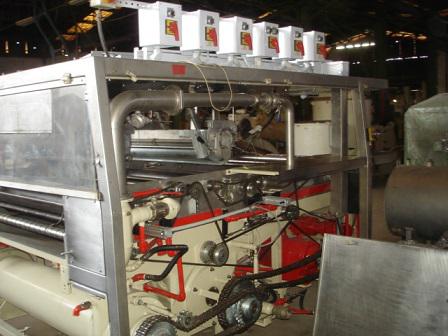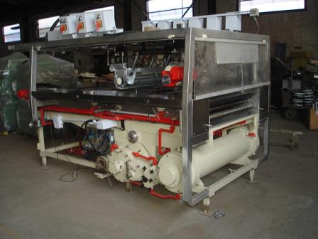 Cobrideira de alta velocidade, 1 m de largura, duas cortinas de cobertura, sistema para cobrir fundos, com temperadeira acoplada e totalmente retrofitada. Marca Solich.