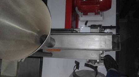 Moinho universal em aço inox Netzsch com silo e calha vibratoria com motor de 3 CV.