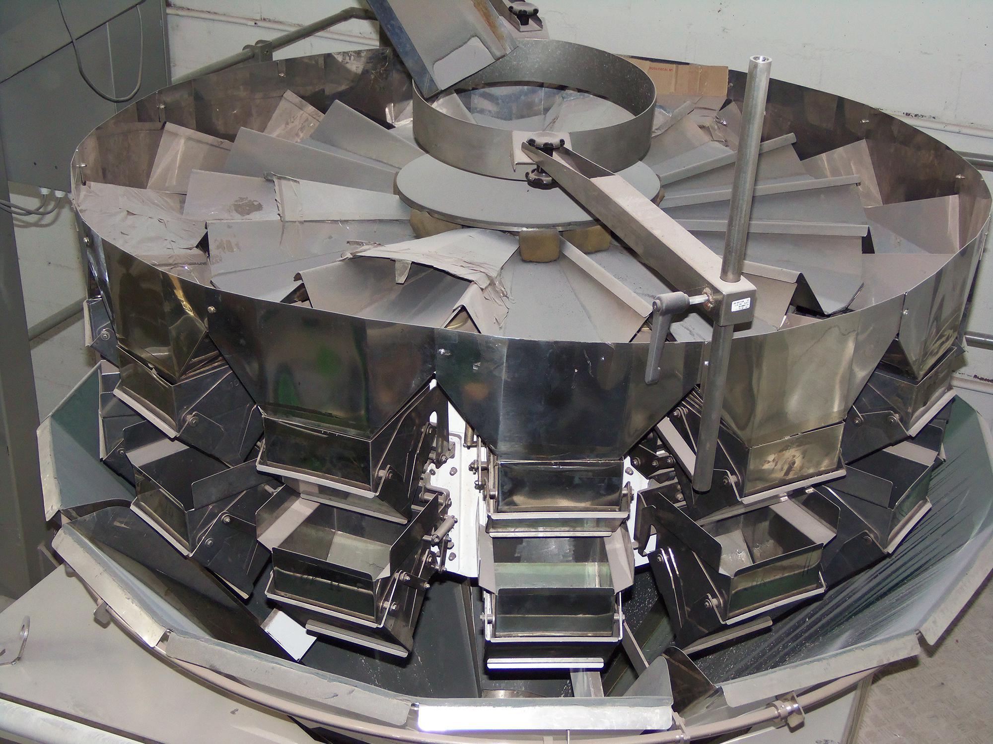 Multicabeças Masipack modelo CP 14 Big. Conjunto composto de balaças, estaleiro e esteira elevatória. Comprimento esteira: R6 m. Ano de abricação: 2011.