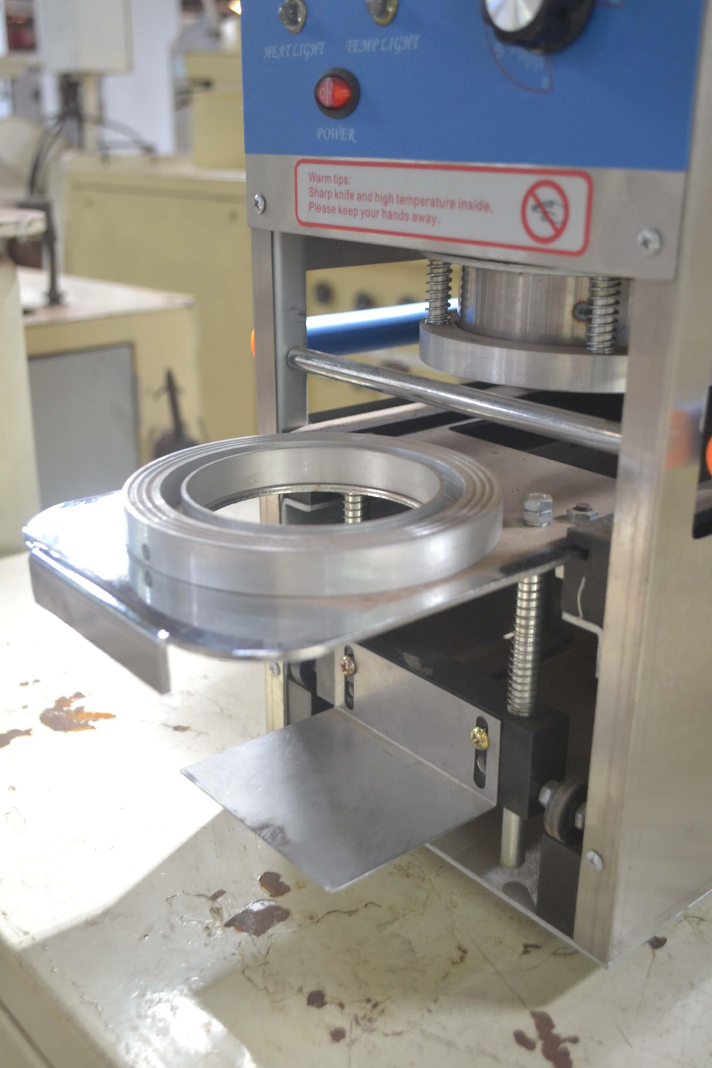Seladora semiautomática de filme plástico para potes. Diâmetro pote: 95 mm. Voltagem: 220 V Monofásico. Marca: Cup Sealer Machine (origem - China) Dimensões do Equipamento: - Comprimento: 410 mm - Largura: 350 mm - Altura: 620 mm