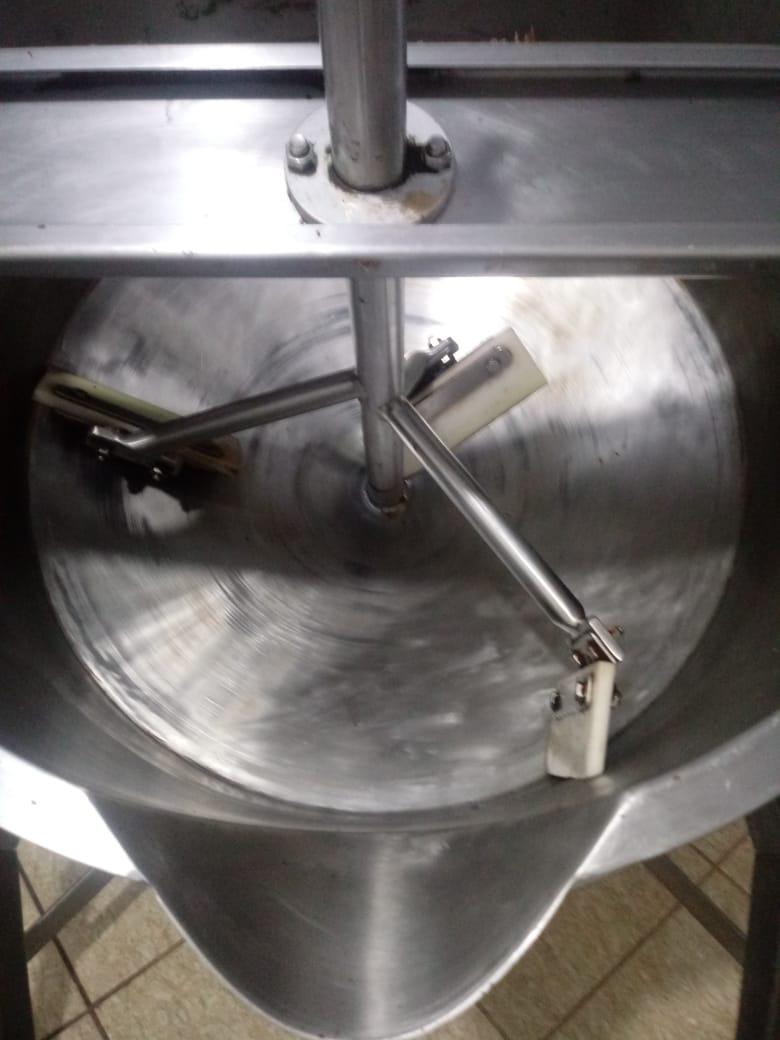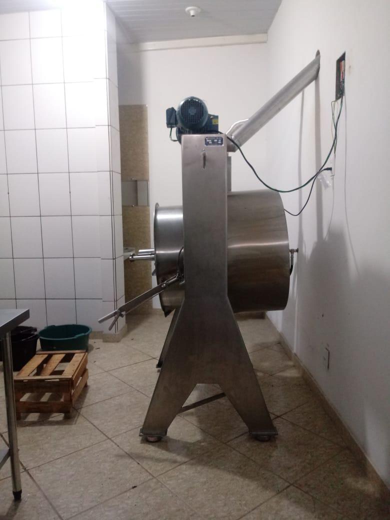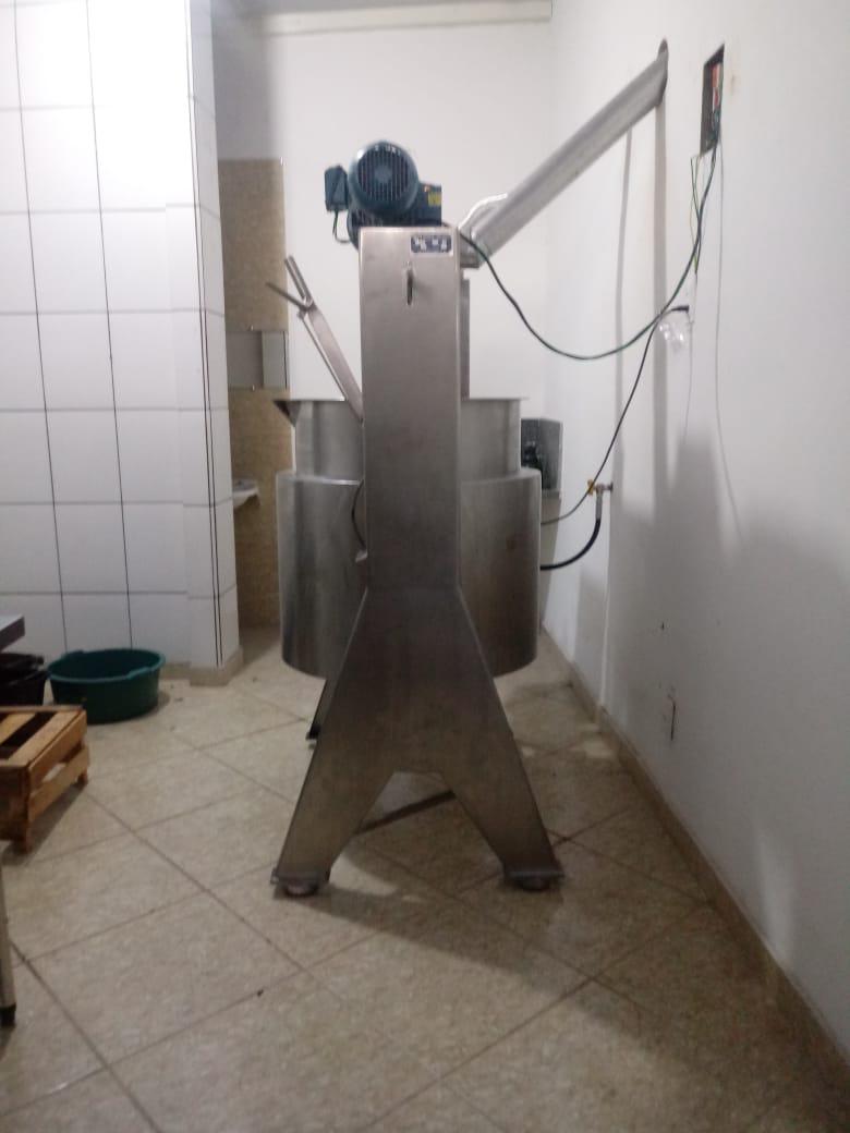 Tacho à gás Mecamau 150 litros. Equipamento com queimador interno (acionamento automático de chamas) que aquece câmara blindada sem contato direto com o ambiente externo, de forma a proporcionar economia de gás. Possui sistemas de raspadores homegeneizadores e de exaustão de vapores. Basculante. Acompanha painel elétrico para controle de temperatura. Motor WEG. Fabricação 2019. Novo/sem uso.