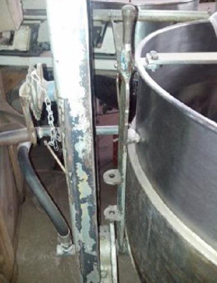 Tacho à vapor capacidade 300 litros. Equipamento basculante em aço inox com camisa externa e estrutura em aço carbono. Voltagem 220 V.