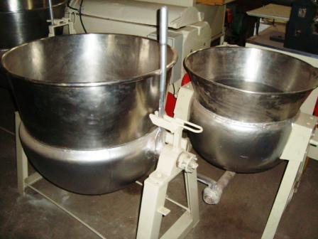 Tachos abertos, encamisados, em aço inox, à vapor, com variedade de capacidades.